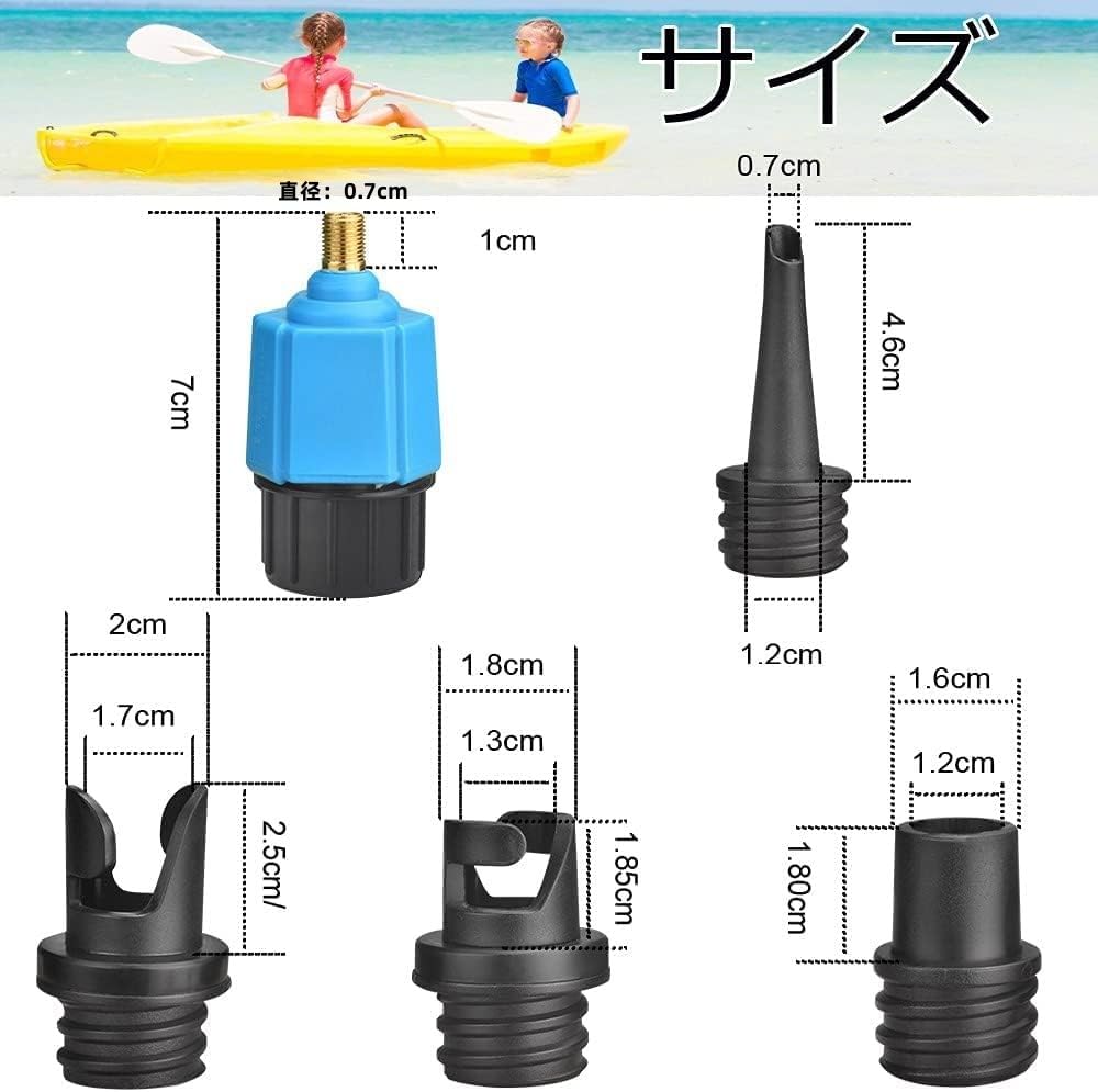 【4種類のノズル】:4つ専門用のノズルが付いているので、様々なバルブに対応できます。変換しやすく、インフレ効率は非常に高いです。だから、特別なゴムボートポンプを購入する必要はありません。