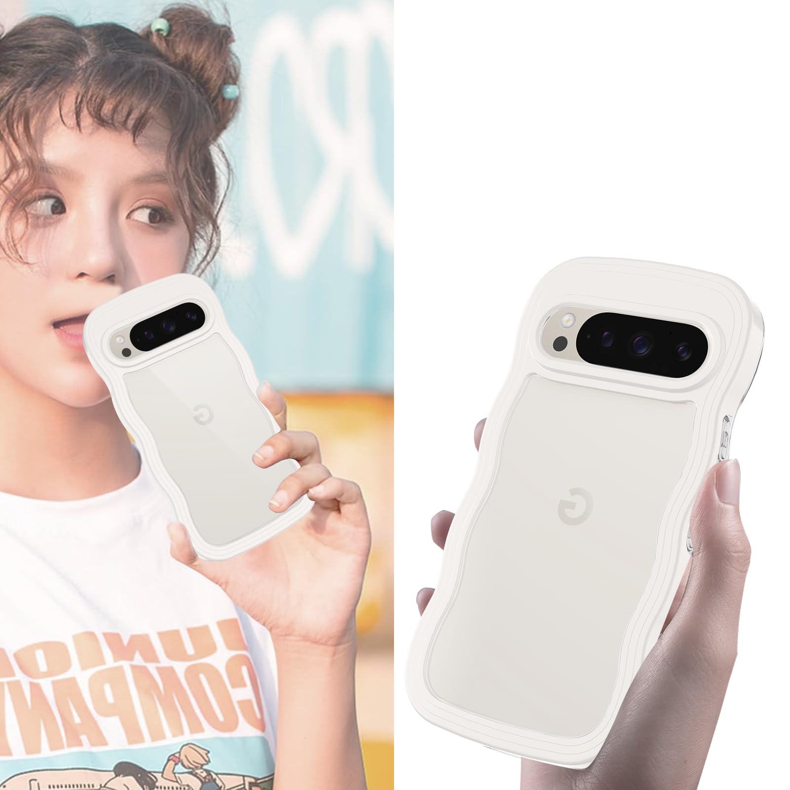 【Newnugds】Google Pixel9 ケース Pixel 9 Pro ケース グーグル ピクセル9 ケース 韓国 おしゃれ シンプル 波状エッジ 透明 2in1 pixel 9 ケース 創意 個性 超軽量 可愛い 女子向け Pixel9/9 Pro スマホケース 指紋防止 擦り傷防止 全面保護 耐衝撃 人気Pixel9/9 Pro ケース ホワイト