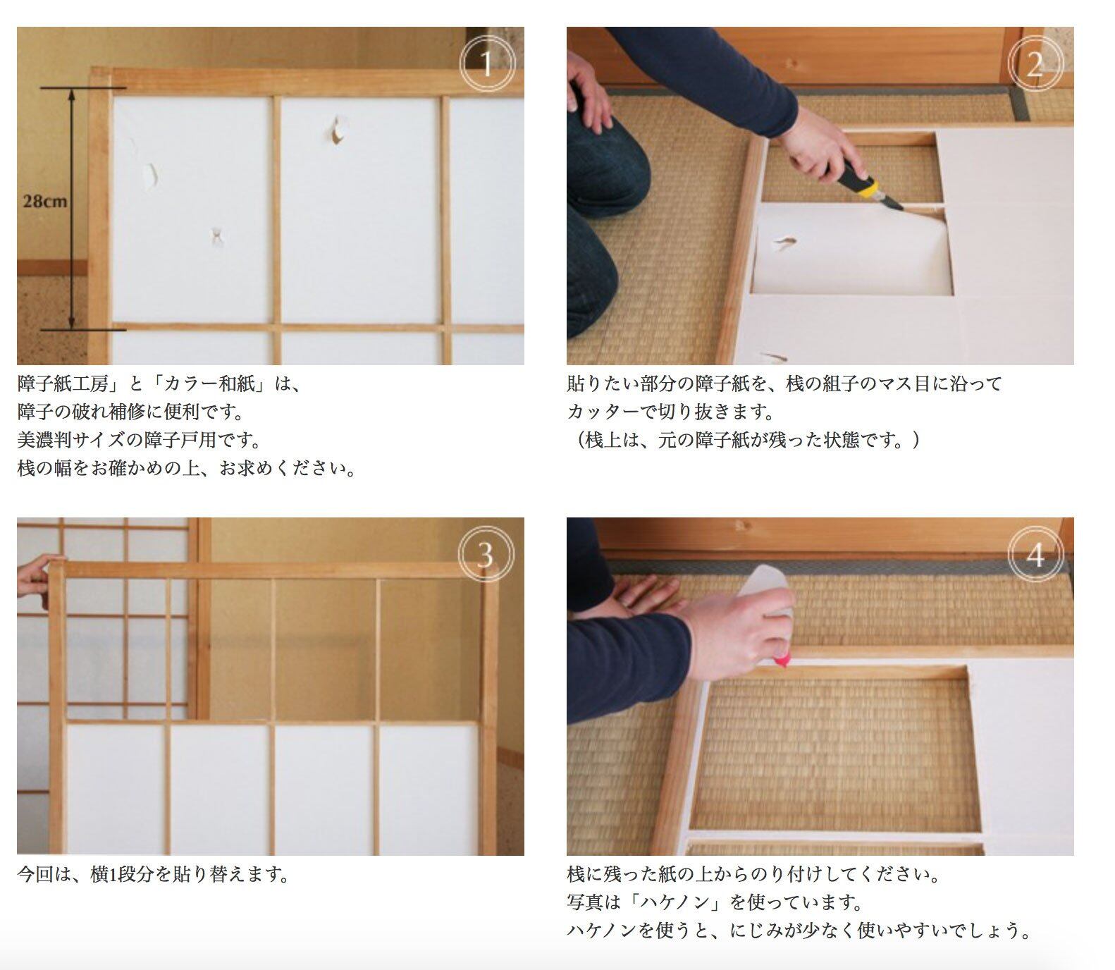 1本で貼れる枚数:横3尺幅の美濃判サイズ建具3段分