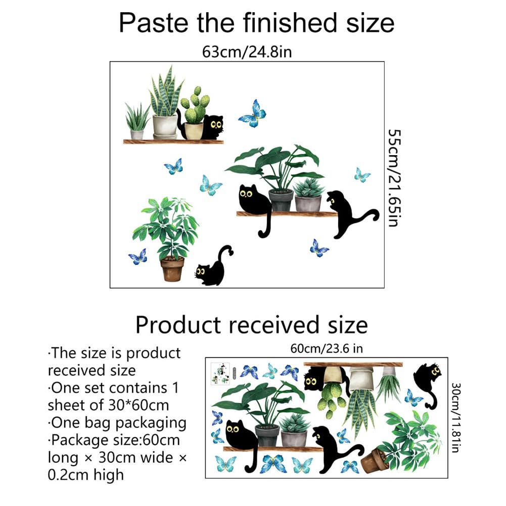 【3dアートシール】 おしゃれ 猫、 リアルな花と蝶々、天然風ガーデン観葉植物 、花鉢植え、明るい色調と強い色が部屋を完璧に飾り、印刷してあなたの壁画に人目を引かせます、人を魅惑する雰囲気を作りだします