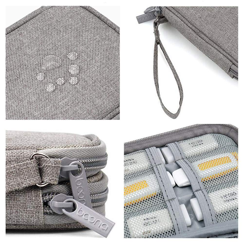 Tumecos 充電器ポーチ トラベルポーチ モバイル用品収納ポーチ デジタルアクセサリー収納ケース 小物入れポーチ PC周辺小物整理 収納ポーチ ハンドル付き 出張 旅行 軽量 (単層-グレー)