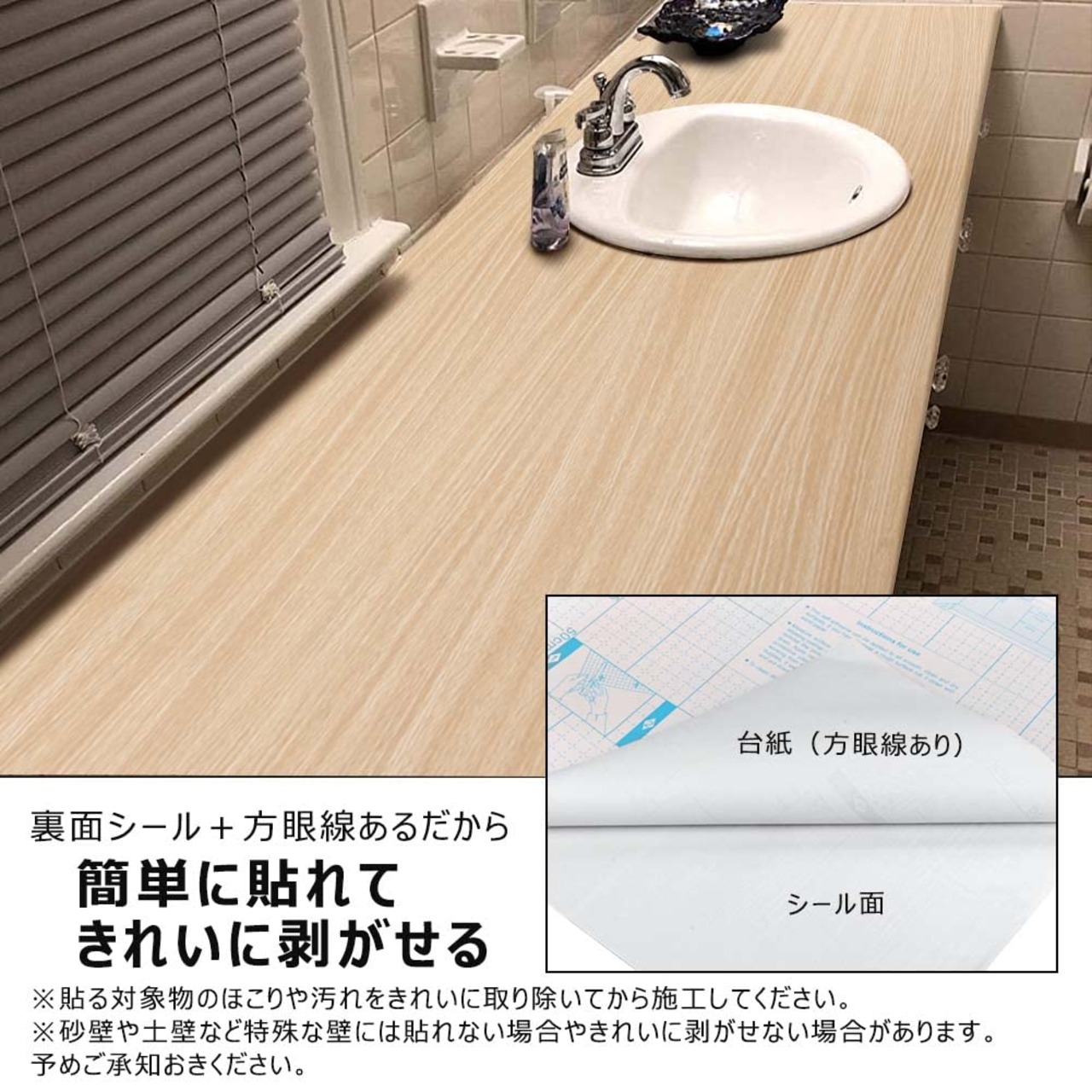 サイズ:約43cmx10m、厚さ:約0.1mm、スタイル:木目壁紙、材質:PVC(防水・防湿・防カビ)汚れがついたらすぐにさっとひと拭きできます。貼る対象物のほこりや汚れをきれいに取り除いてから施工してください。
