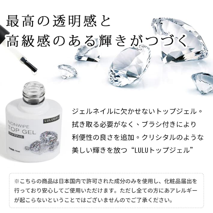 LULUGEL ジェルネイル トップコート ベースコート 各15g ポリッシュ ノンワイプ ネイル トップジェル ベースジェル ネイル クリア ノンワイプトップジェル ジェル nail ネイルジェル (ベース&トップ) 爪用化粧料