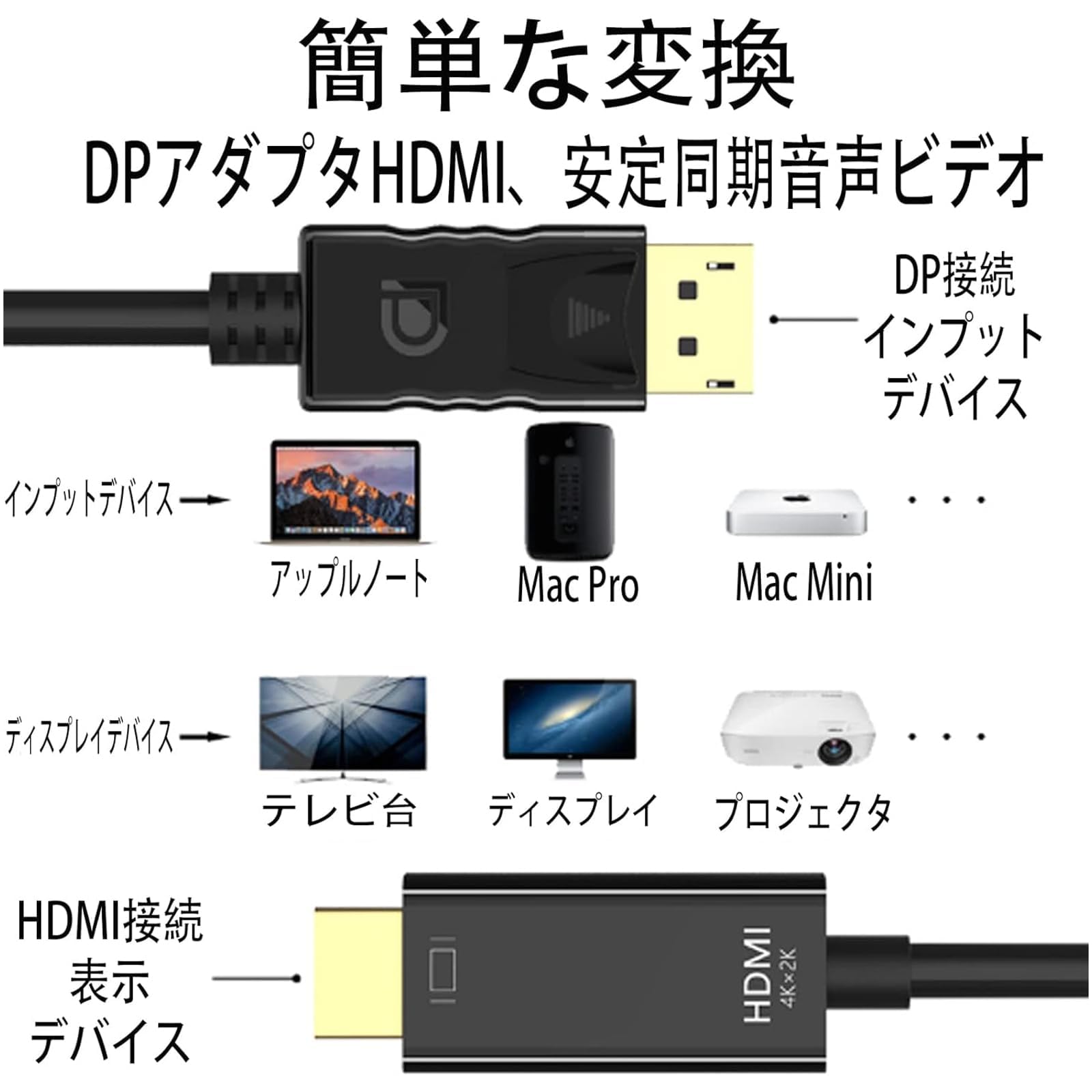 [幅広く互換性があり、使いやすい]接続に使用できるDisplay-Port HDMI変換ケーブルで、変換アダプタなしでデバイスに直接接続できます。このHDMI変換DisplayPortケーブルは、デスクトップ、ノートパソコン、GPU(AMD、NVIDIA)、その他のDisplayPort搭載デバイスに対応しています。テレビ、プロジェクタ、ディスプレイ、VRヘッドセットなどに接続します。