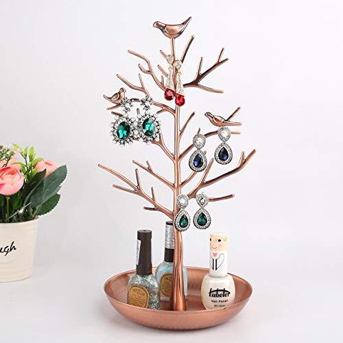 ジュエリーホルダー ディスプレイスタンド アクセサリー 小鳥がとまる 美しい ツリー型 アクセサリー スタンド ネックレス ピアス イヤリング 小物 指輪 誕生日 母の日 収納ラック飾り物 (古銅色)