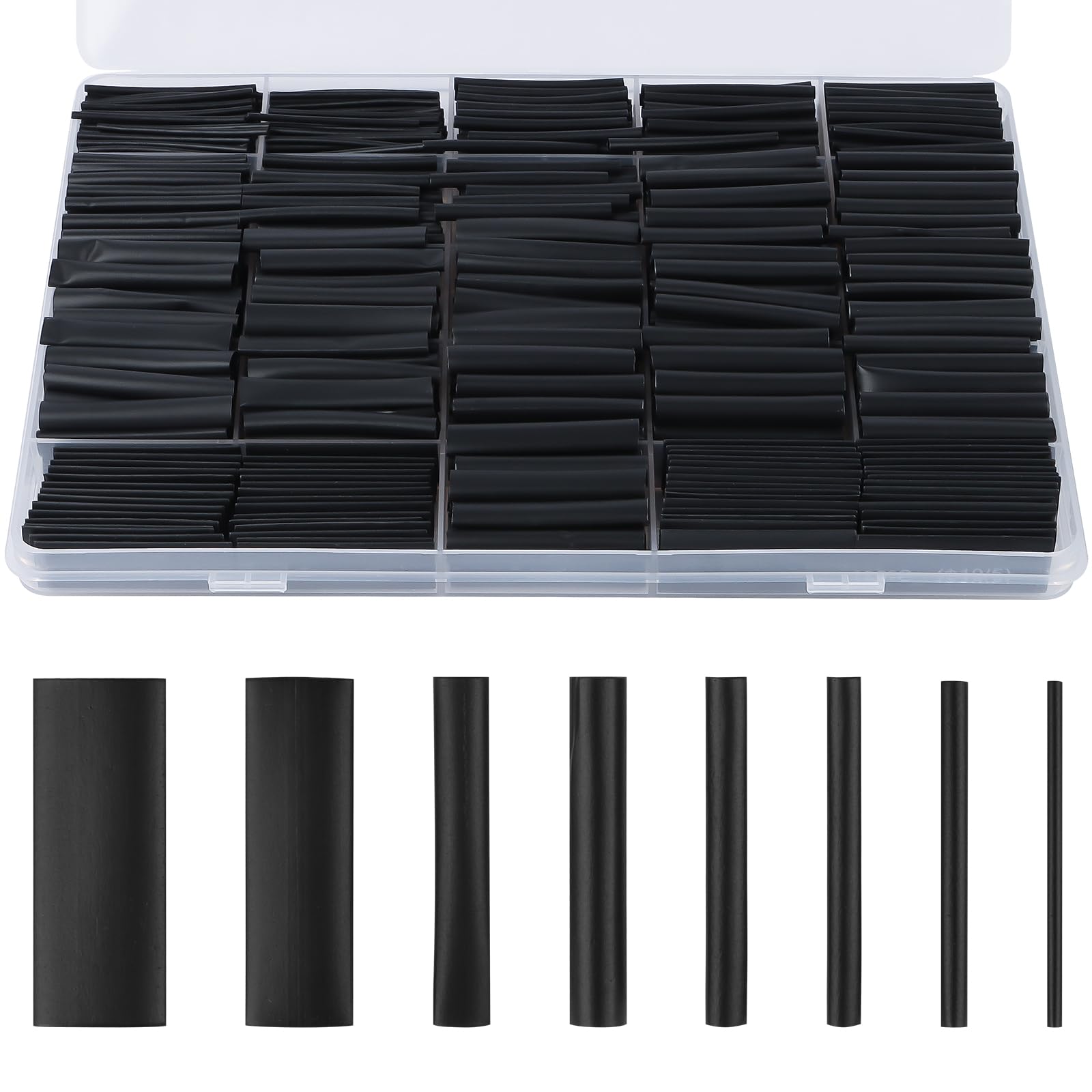 FINGOOO 熱収縮チューブ 650PCSセット・8サイズ 絶縁チューブ 伸縮チューブ ヒシチューブ 防水 高防水性 高絶縁性 高難燃性 収納ボックス付き (黒 650pcs)