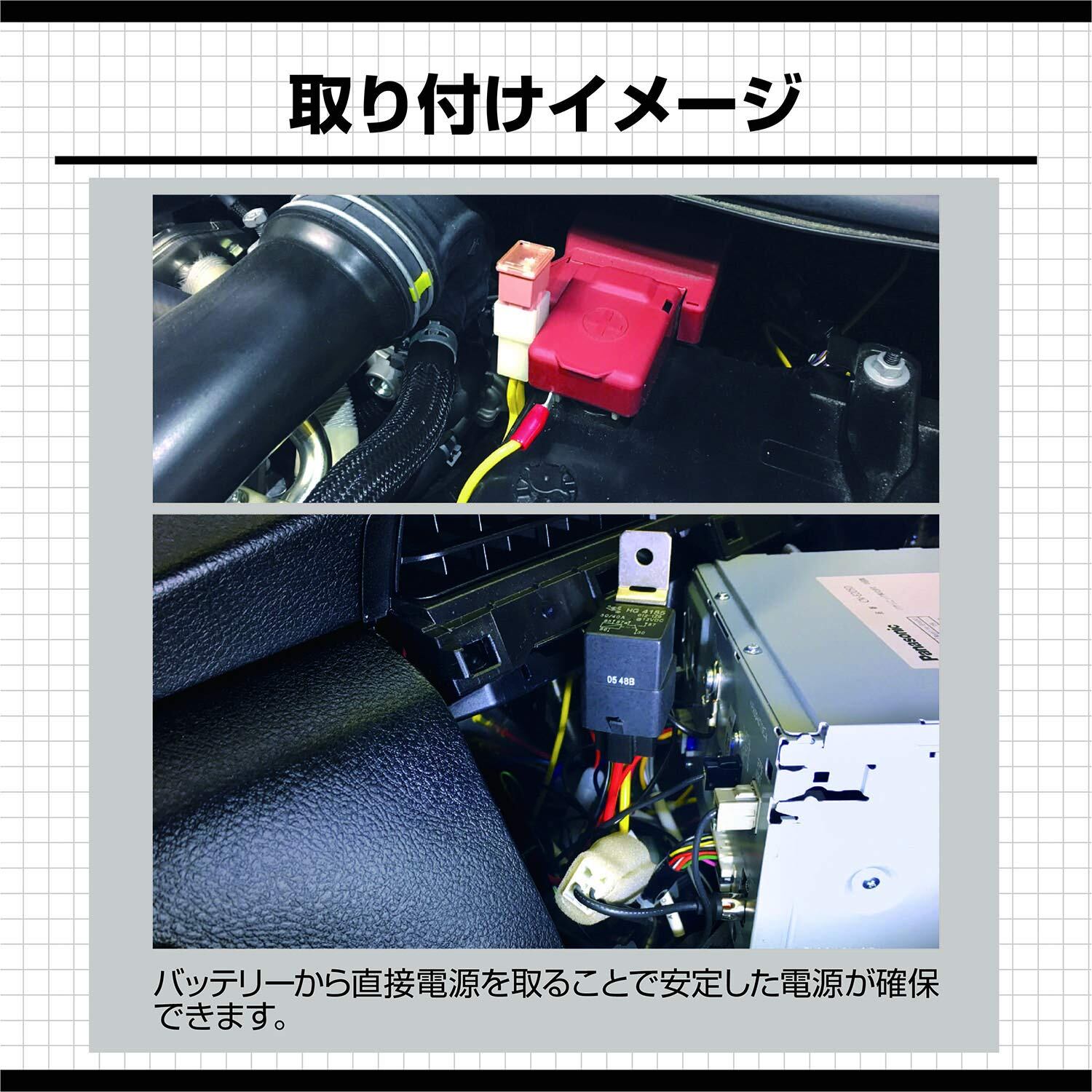 リレーにより、バッテリーから取り出した電源(常時)をアクセサリー電源に連動させてON・OFFできる