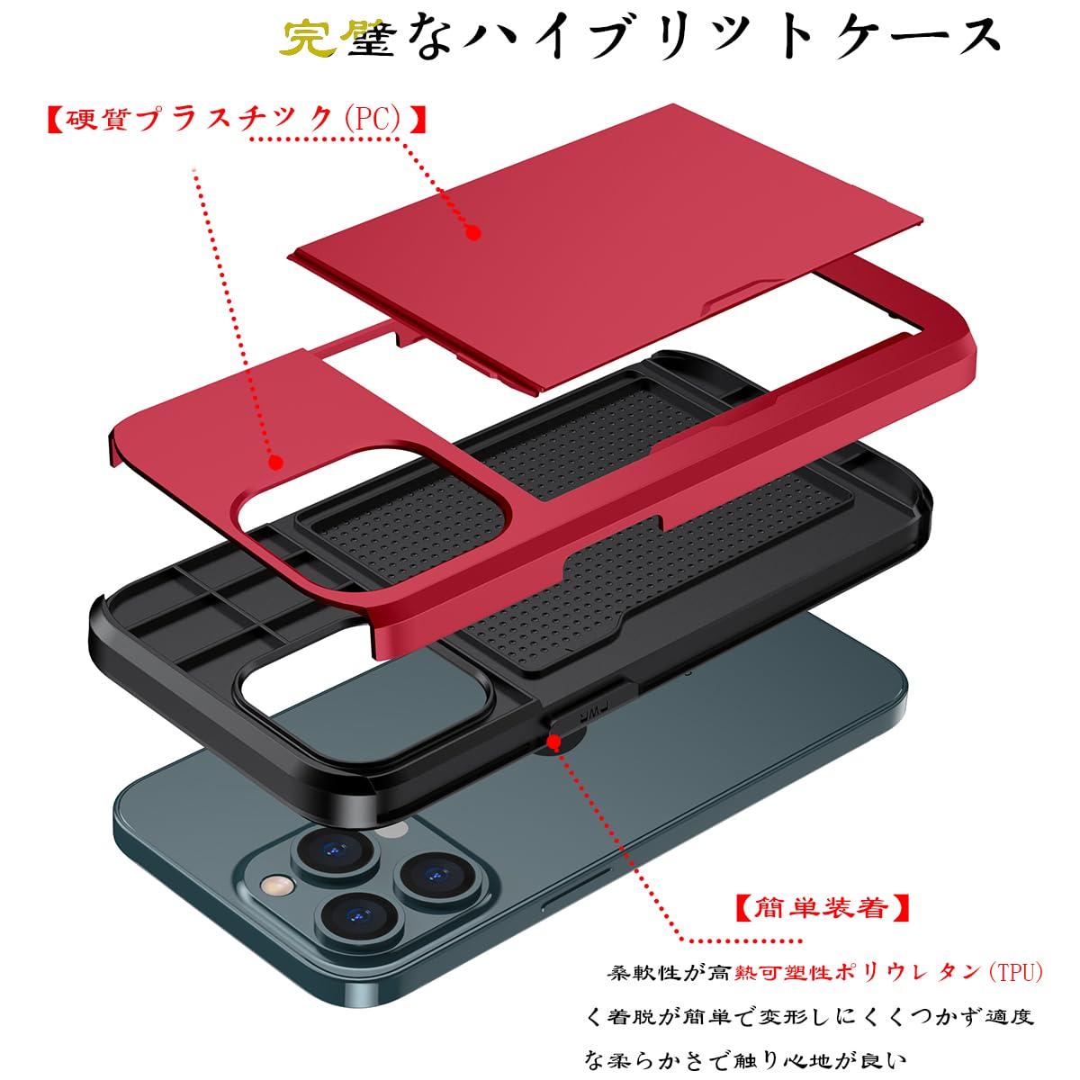 【超高耐衝撃性】背面は非常に硬いPC素材で作られています,高い耐衝撃性を持て、携帯電話を全方位からしっかりと守ります、 カメラレンズ周りは、1.5mm高く設計されており、レンズを摩擦や傷から保護します。