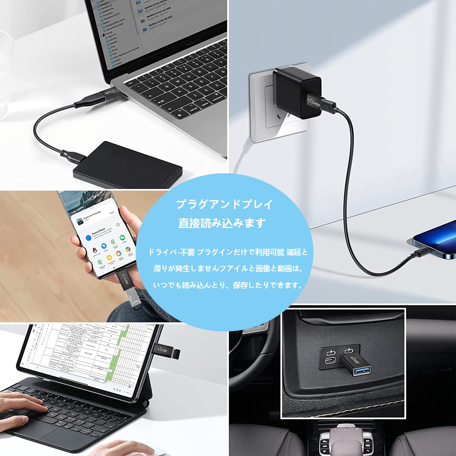 【OTG対応】幅広い対応機種ノートPCやタブレット端末、スマートフォン等の幅広いUSB-C機器に対応し、お使いの機器でUSB-C端子が利用可能です。