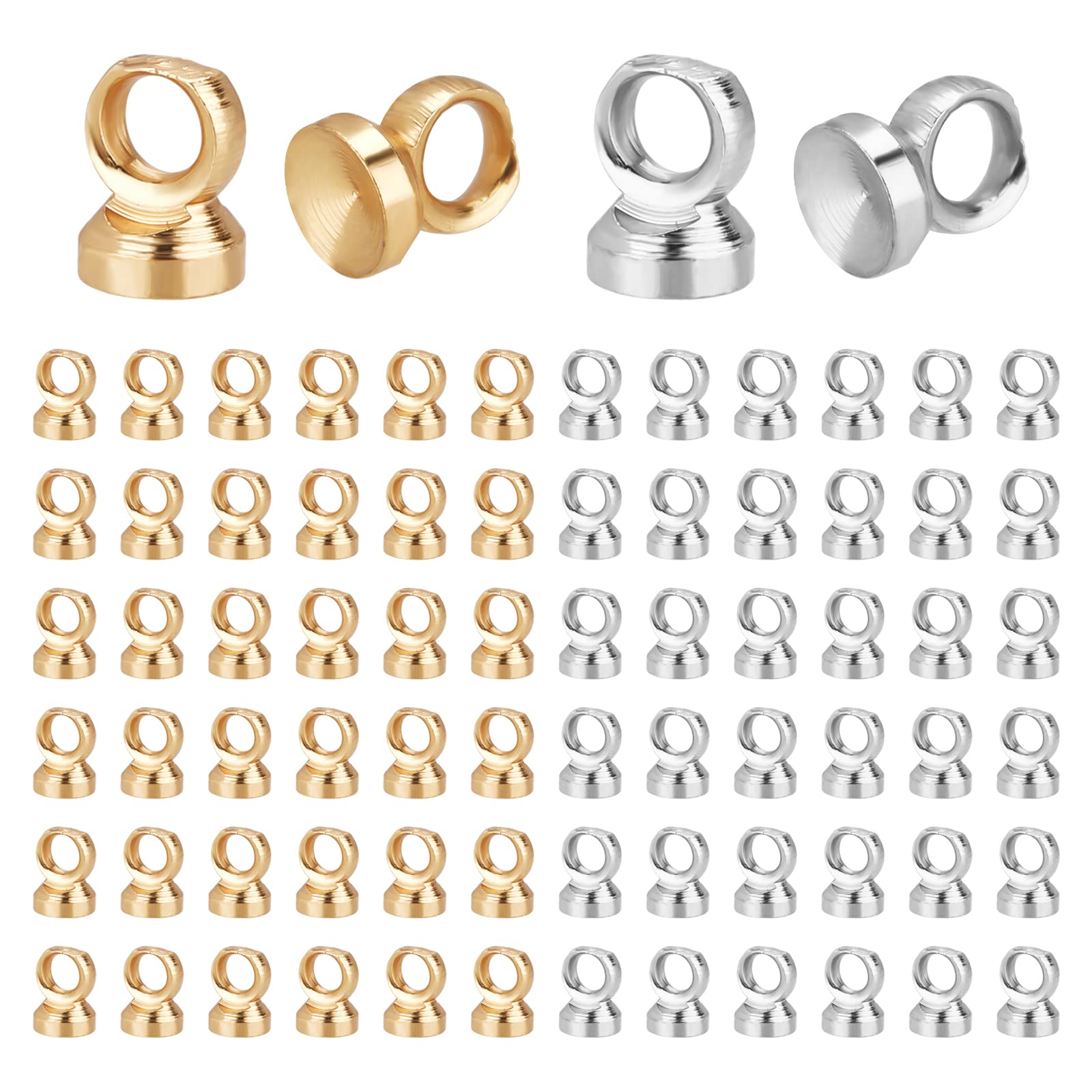 PH PandaHall 約200個セット ヒートン ヒートンキャップ ビーズキャップ 2色 ピンなし カン付き イヤリングパーツ レジンアクセサリー 丸ヒートン 接合金具 アクセサリーパーツ チャーム取付カバー ペンダント接続金具 ハンドメイド 手芸用品 クラフト 金具 ゴールド シルバー ケース付き