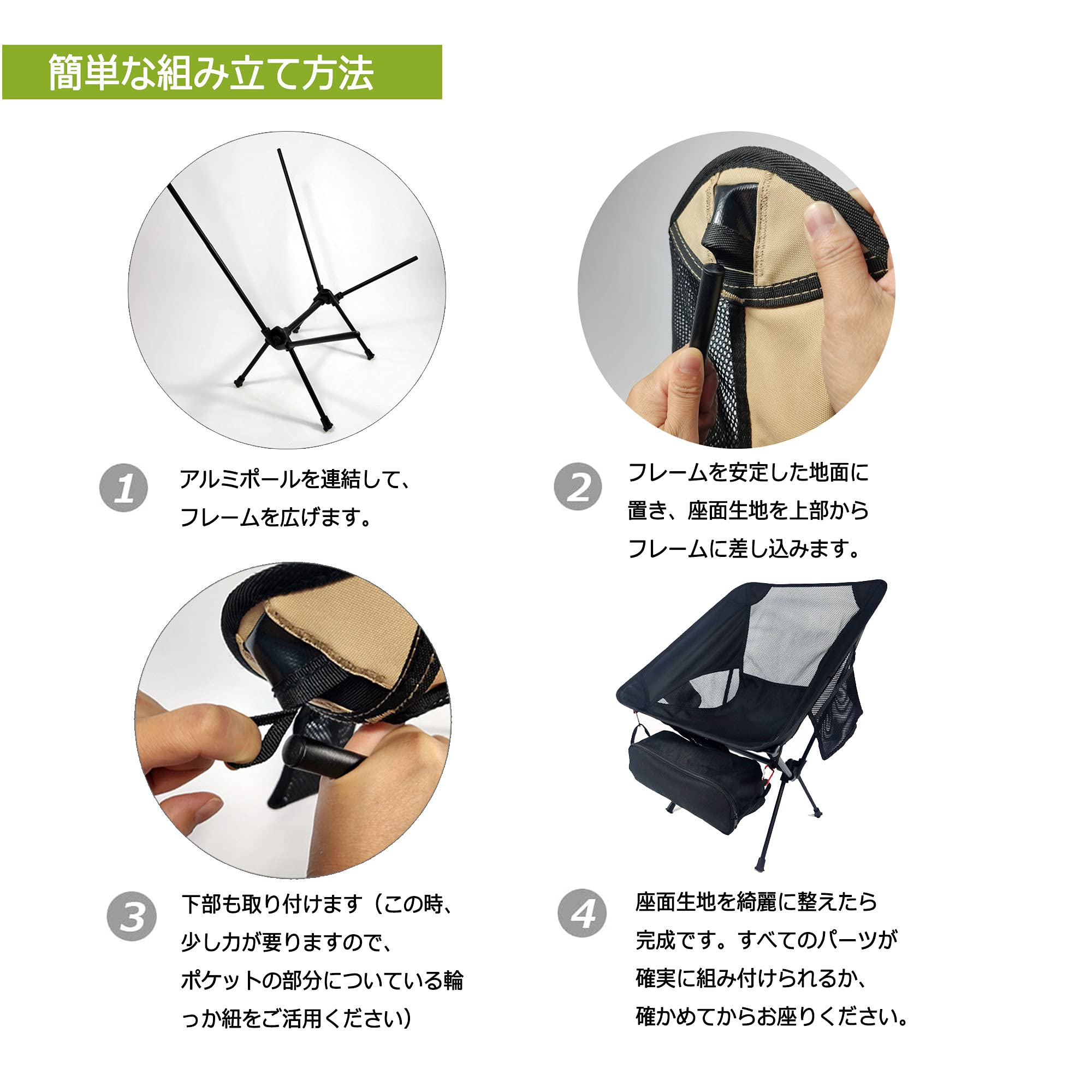 【様々な場所で大活躍】この折り畳み椅子は様々なアウトドアで活躍します。キャンプ、釣り、ハイキング、トレッキング、登山、 花火大会 、運動会、お花見など、シーンを選ばず、どこでもいつでも気軽に使えます。合宿ゼミなど室内環境でも快適に楽しめます。お品物については私どもが検品をさせていただいておりますので、どうぞご安心していただきお買い物お楽しみ下さいませ。