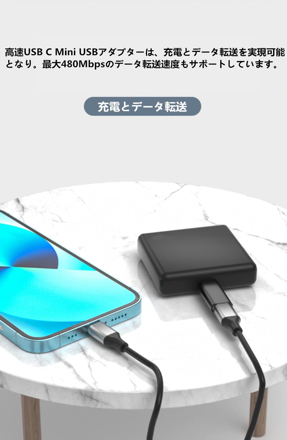 【充電&データ同期】Mini USBポートを搭載したデバイスに幅広い互換性があります。高速USB C - Mini USBアダプターは、充電とデータ転送を実現可能となり。最大480Mbpsのデータ転送速度もサポートしています。