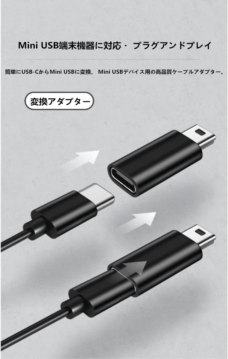 【USB C Mini USBアダプター】USB Type Cケーブルしかない場合、本製品を使用して、接続するだけであらゆる設定が不要となりタブレットなどUSB type cをMini USBに迅速に変換できるアダプターです。Mini USBデバイス用の高品質ケーブルアダプター。