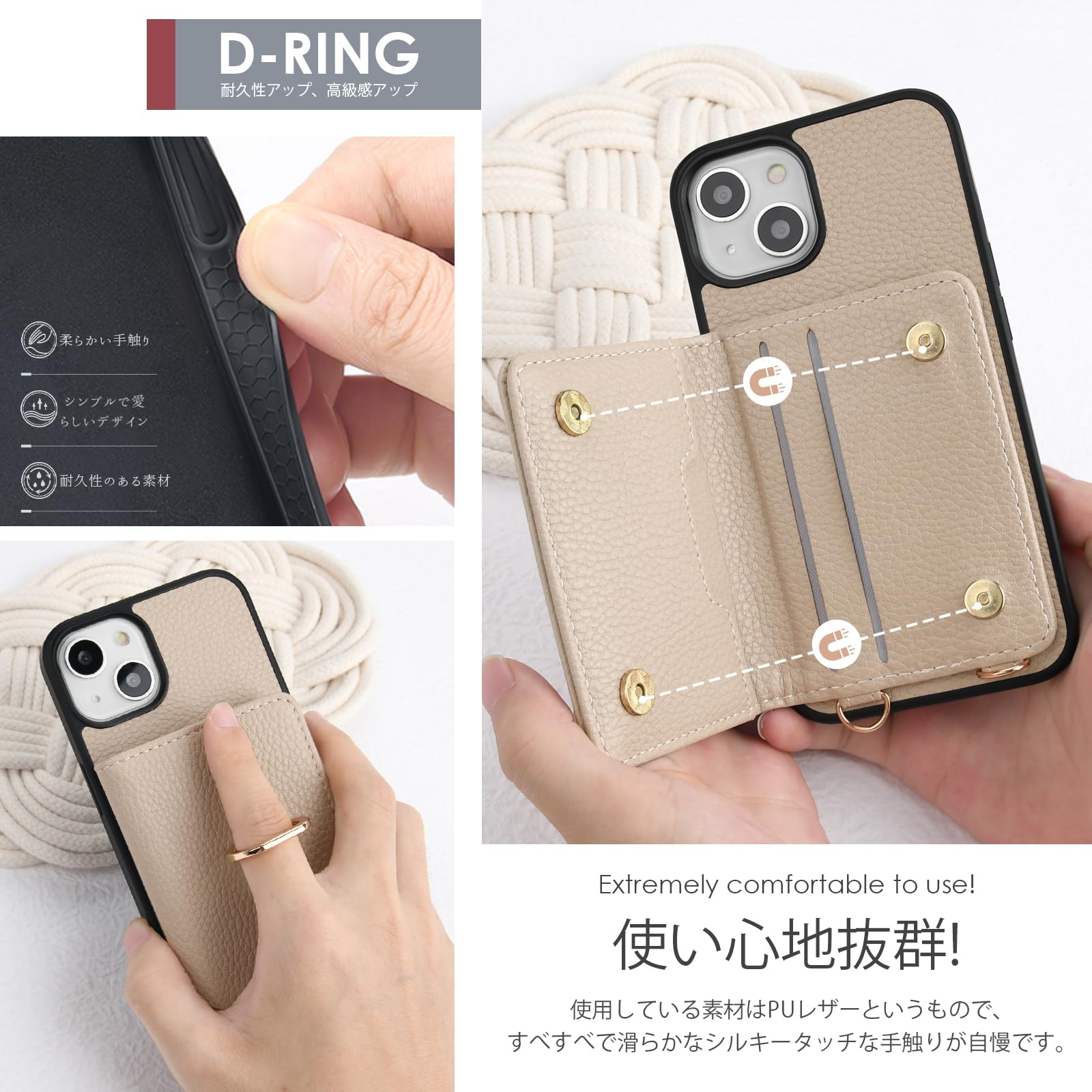 oyaka 対応 iPhone14ケース ショルダー アイフォン 14 スマホケース 背面 財布型 カード収納 可愛い お洒落 リング付きケース あいふぉん 14 携帯ケース カバー 首掛け 肩掛け スマホ ショルダーケース ストラップ iPhone14 携帯 ケース 磁気 PUレザー 衝撃吸収 全面保護-コーラルピンク