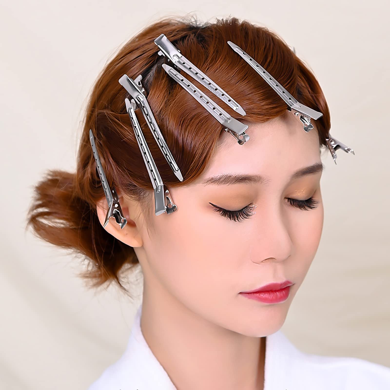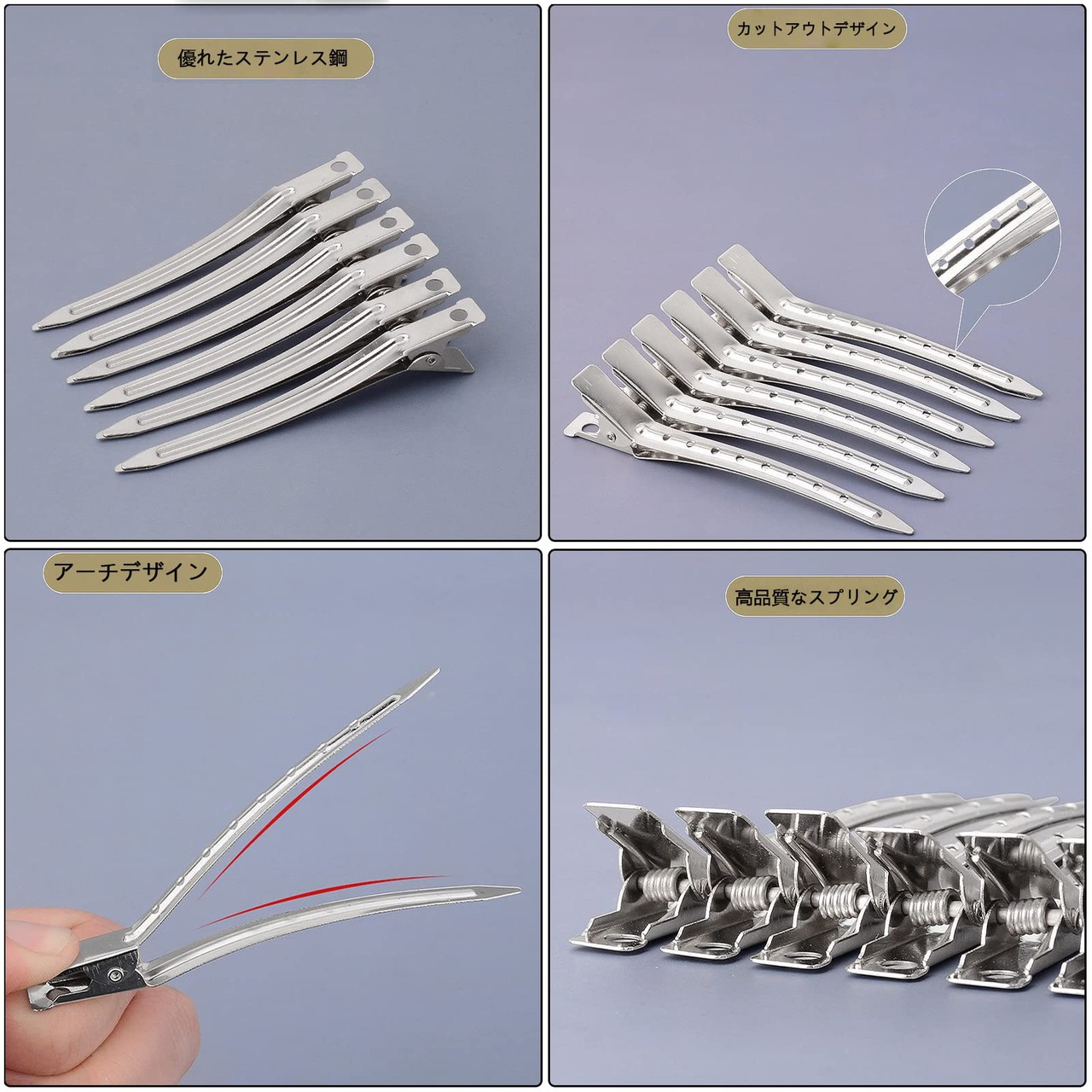 24本セット ステンレス ダッカール ヘアクリップ 美容業界 特許 ダッカール 強力 跡がつかない ヘアクリップ ヘアピン 前髪 髪留め クリップ ワニクリップ プロ用 ヘアカット クリップ メイク用 美容業界 業務用 9cm (シルバー)