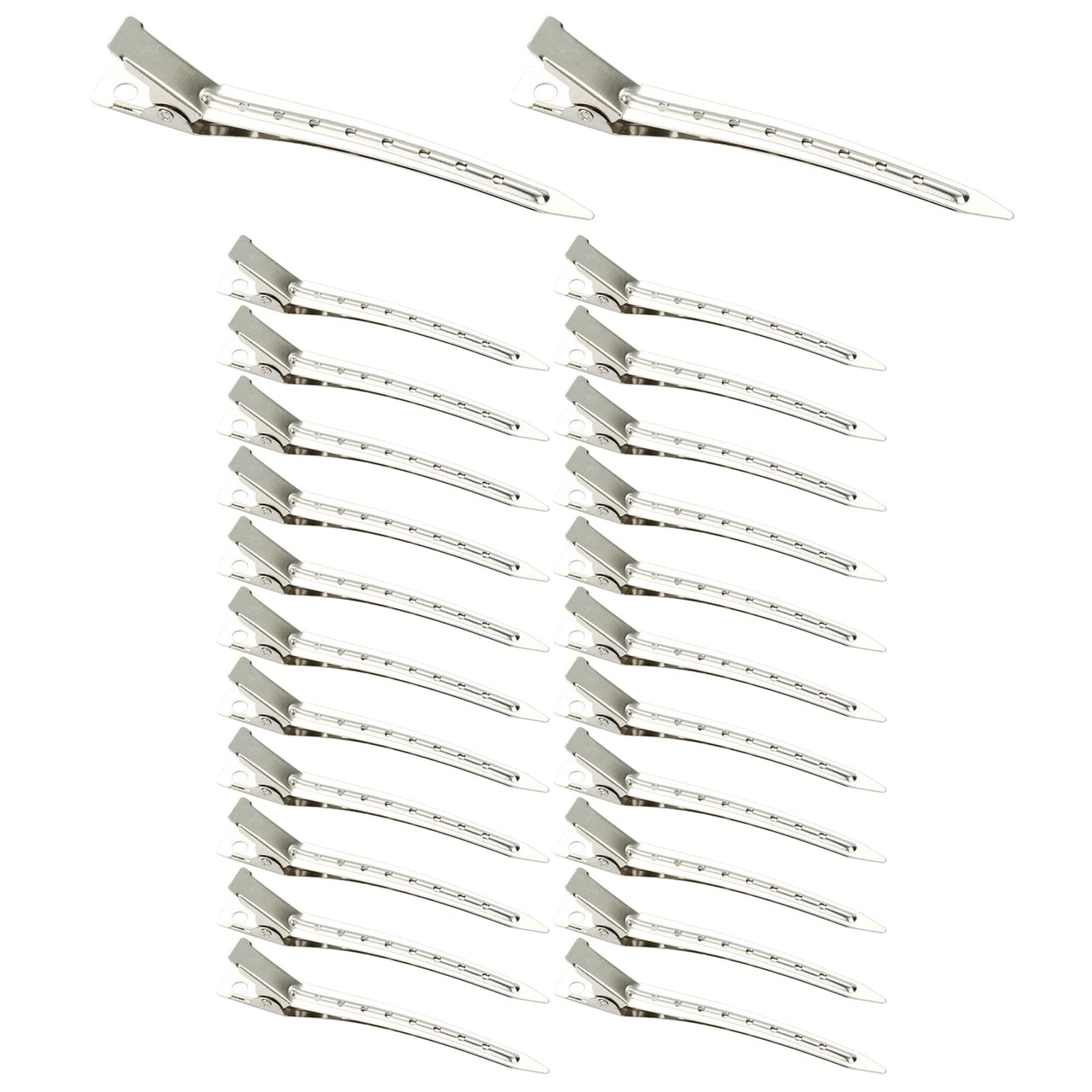 【パッケージ内容】シルバーダックビルヘアクリップ24個、サイズは約9×1.5cm。