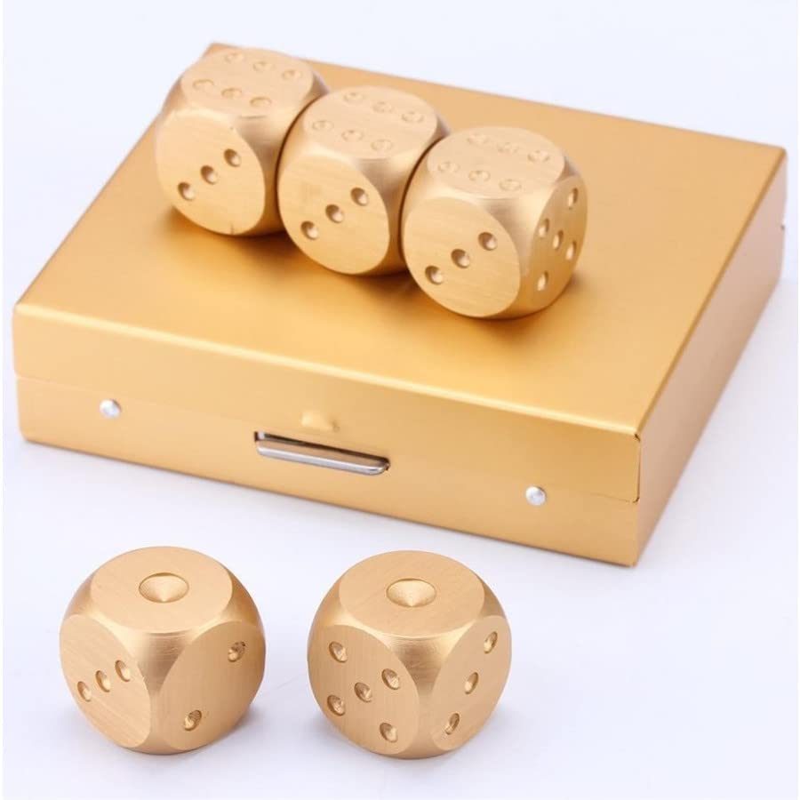 サイコロ 金属製 メタルダイス ゴールド アルミ合金 6面 賽子 5個入り 専用ケース付き