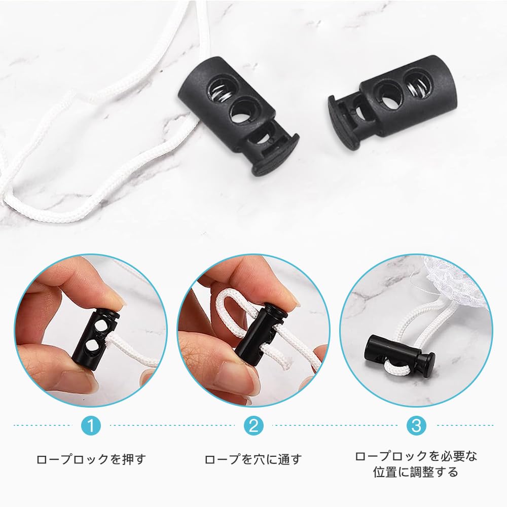 コンパクトでスタイリッシュな機能:コードストッパー重量はわずか3gで、丈夫なブラスチック素材プラス強力バネを採用して、壊れにくい耐久性が高いです。丸型で滑らかでバリも少ないです。