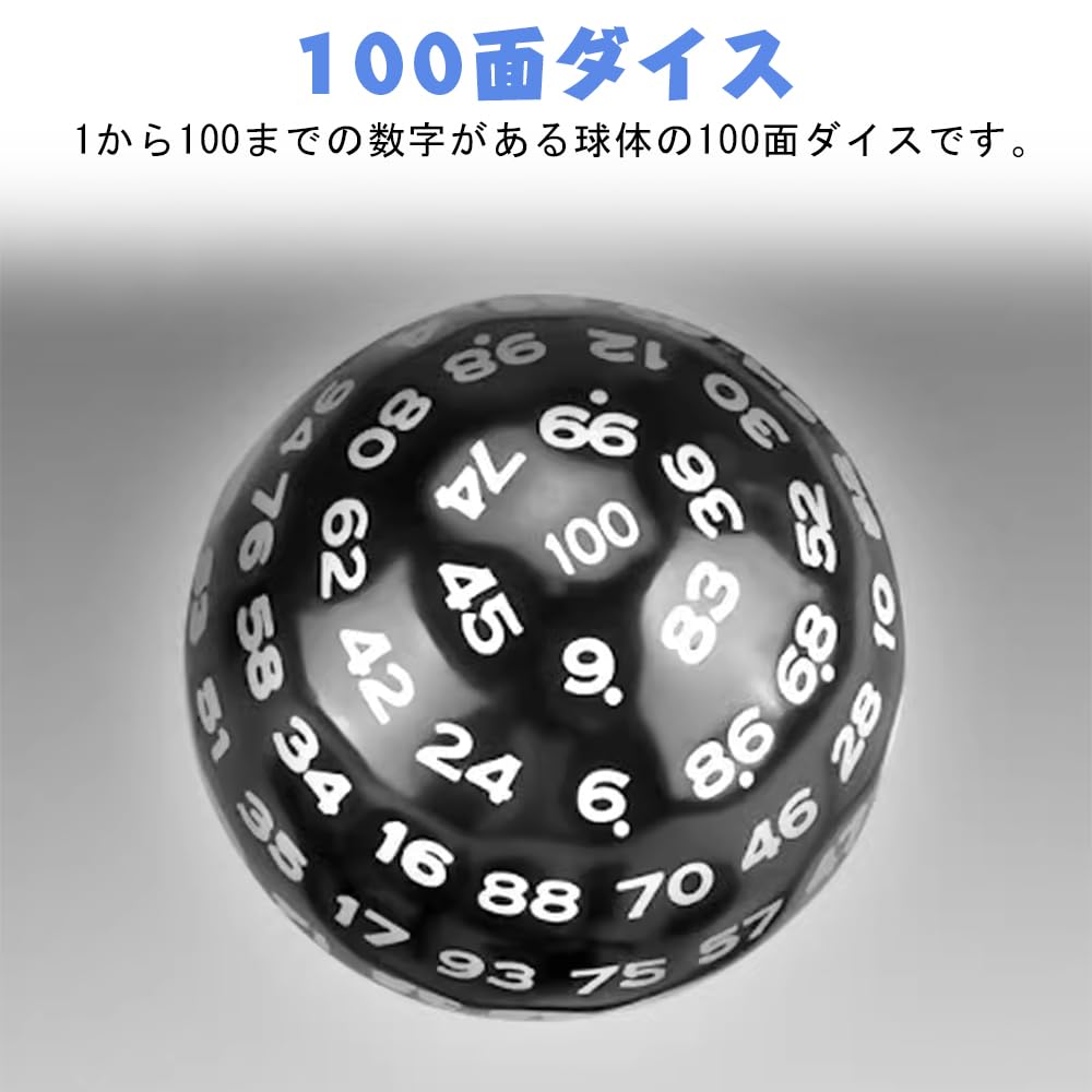 【100面ダイス】従来の6面ダイスとは一線を画す、1から100までの数字を備えた球体型ダイスです。
