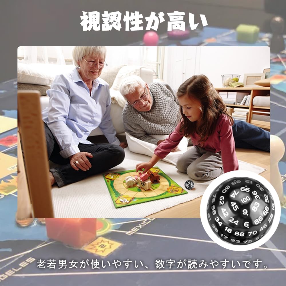 ダイス 100面ダイス 百面ダイス サイコロ D100 多面体サイコロ テーブルゲーム ボードゲーム RPG パーティー用品 直径約48mm ブラック