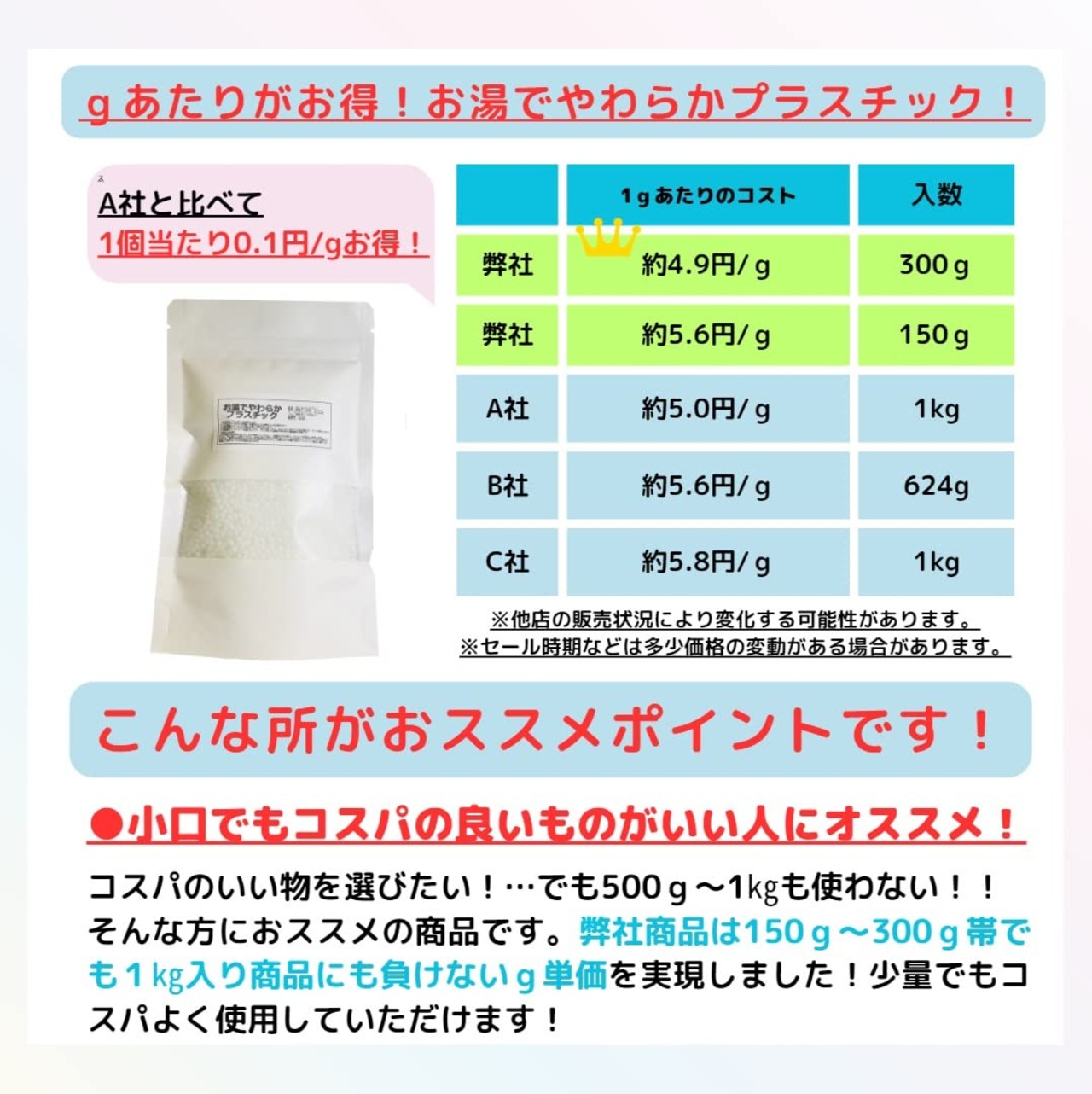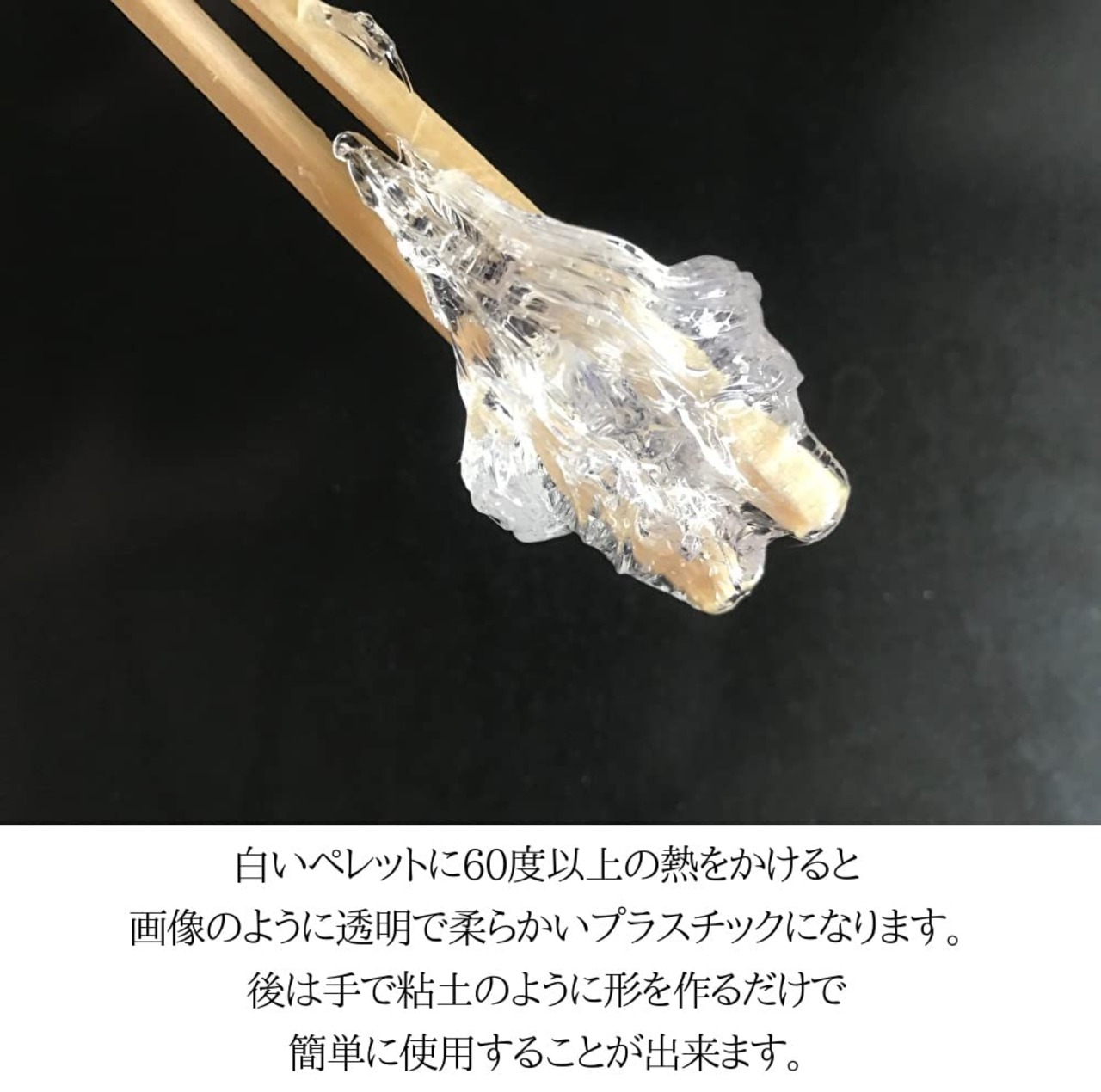 【使用上の注意】 ● お子様の手の届かないところに保管してください。●直射日光を避け、チャックを閉めた状態で保管してください。●火傷にご注意ください。●髪の毛に付着した場合はベンジンで拭き取ってください。●生分解性があるため、屋外の使用は劣化を早める可能性があります。●柔らかい状態で他のプラスチック製品に触れると付着して取れなくなる可能性があります。