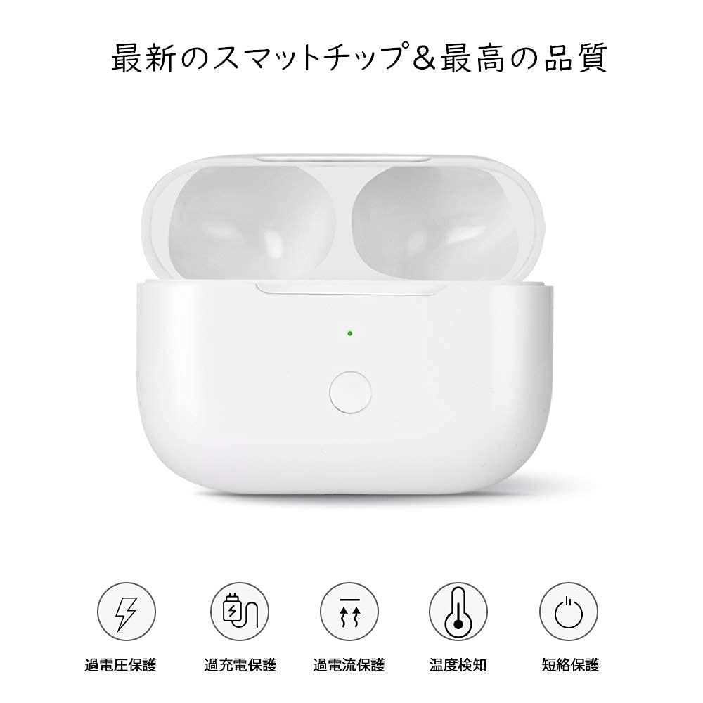 充電ケース、Airpods Pro第1世代&第2世代との互換性あり Airpods Pro交換用充電器 エアーポッズプロ用充電ケース 充電器 ワイヤレス充電 Bluetoothペアリング可能 (ホワイト)