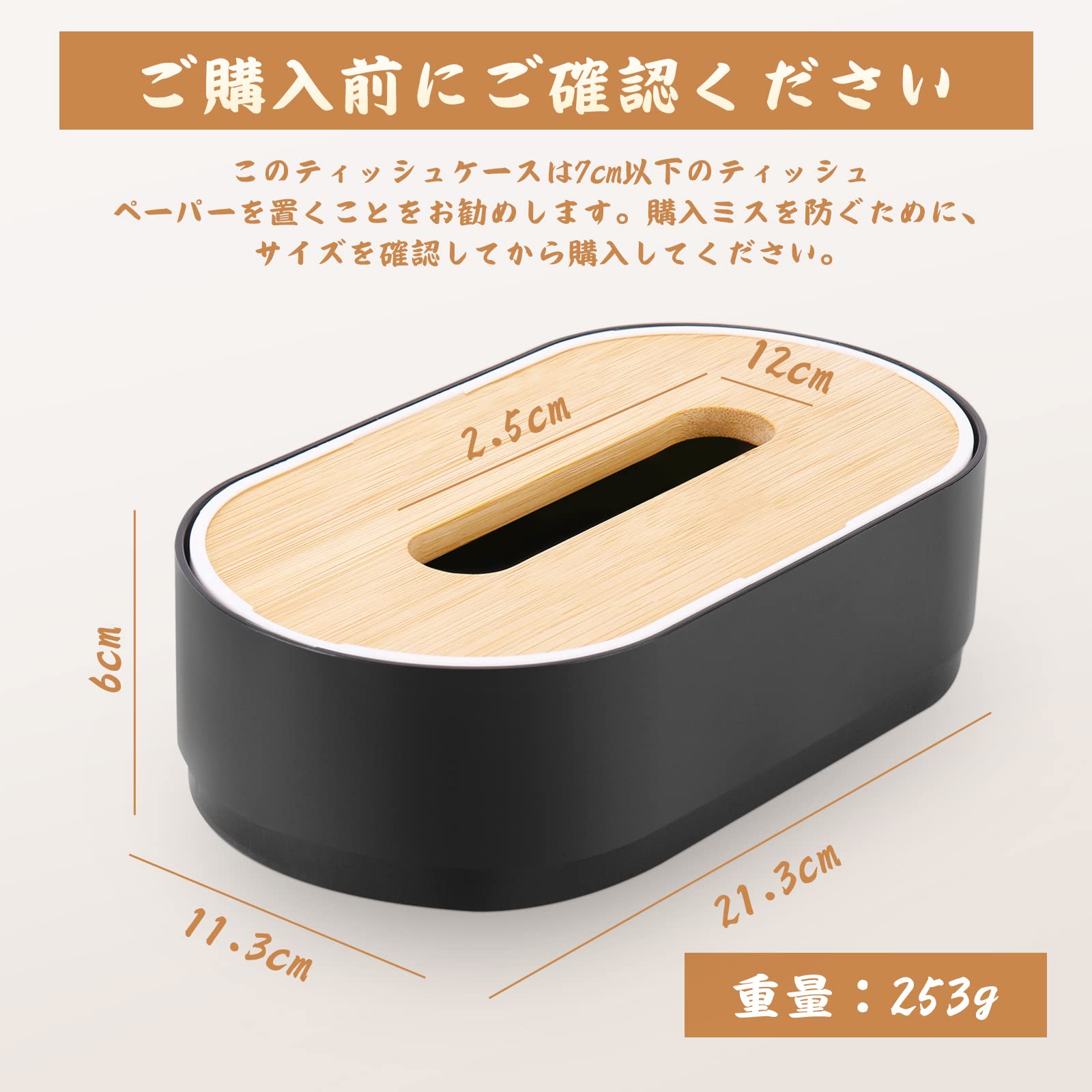 ティッシュケースは独特の昇降設計を採用し、底部の高さは6 cm、昇降可能は2.5 cmで、7 cm程度のティッシュペーパーを置くことをお勧めします。