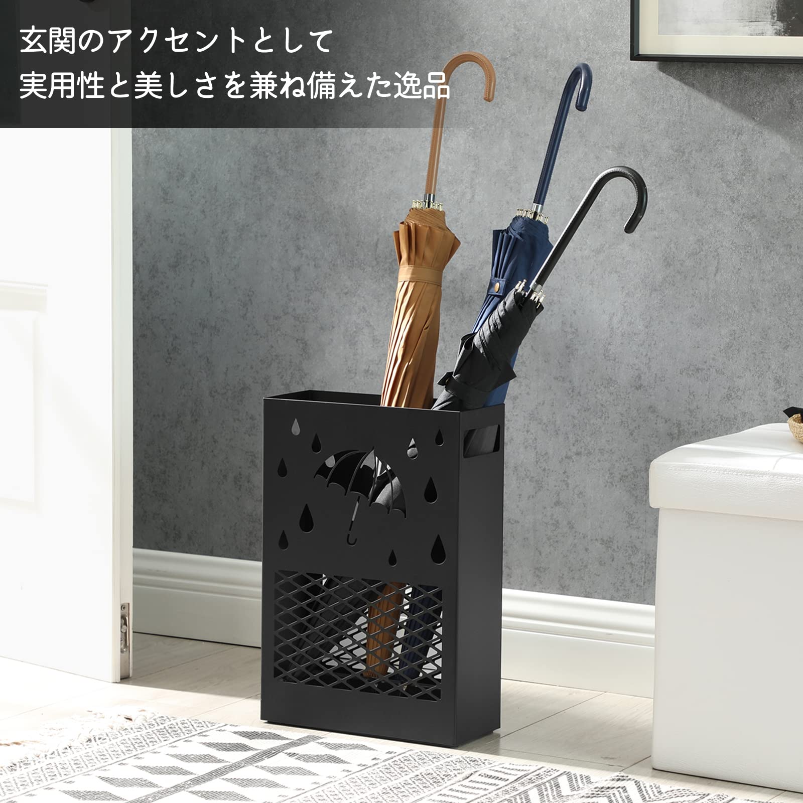 【オシャレなデザイン】落ちている雨と雨中の傘をデザインした方型傘立です。現代感が溢れている真っ黒なデザインは、玄関のアクセントとして、落ち着いた雰囲気を演出してくれます。
