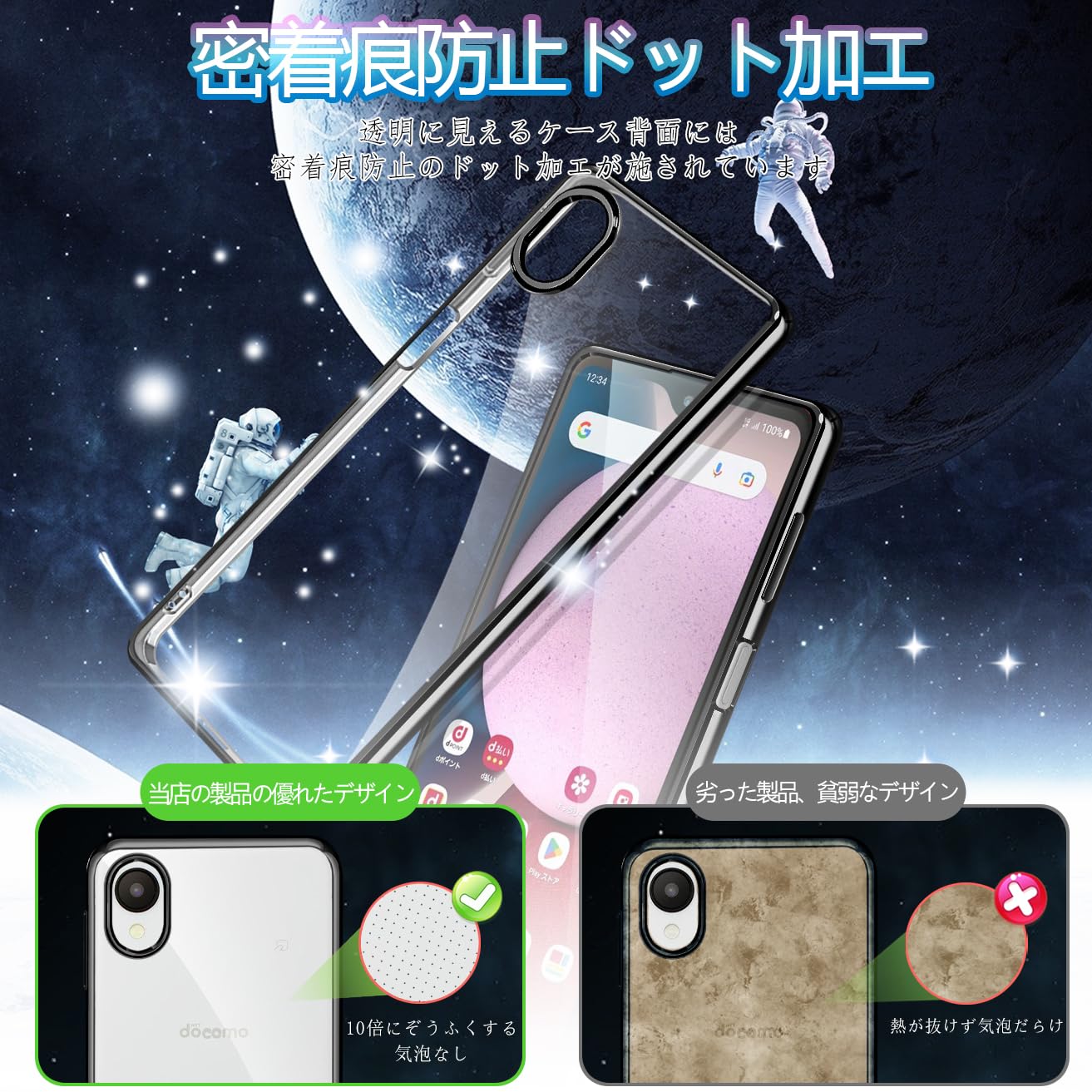 【驚きの透明感】Galaxy A23用ケースの背面は透き通った高い透明度を誇り、フレームは多層メッキ加工技術によって設計。透明な背面はGalaxy A23の本来の美しさを示し、フレームのメッキはよりおしゃれに感じます。高品質のTPUは、優れたTPU材料を採用し、柔軟に変形しない、油を噴き出す技術を加え、手触りを防ぎ、指紋の汗を防ぎ、触感が良好である。