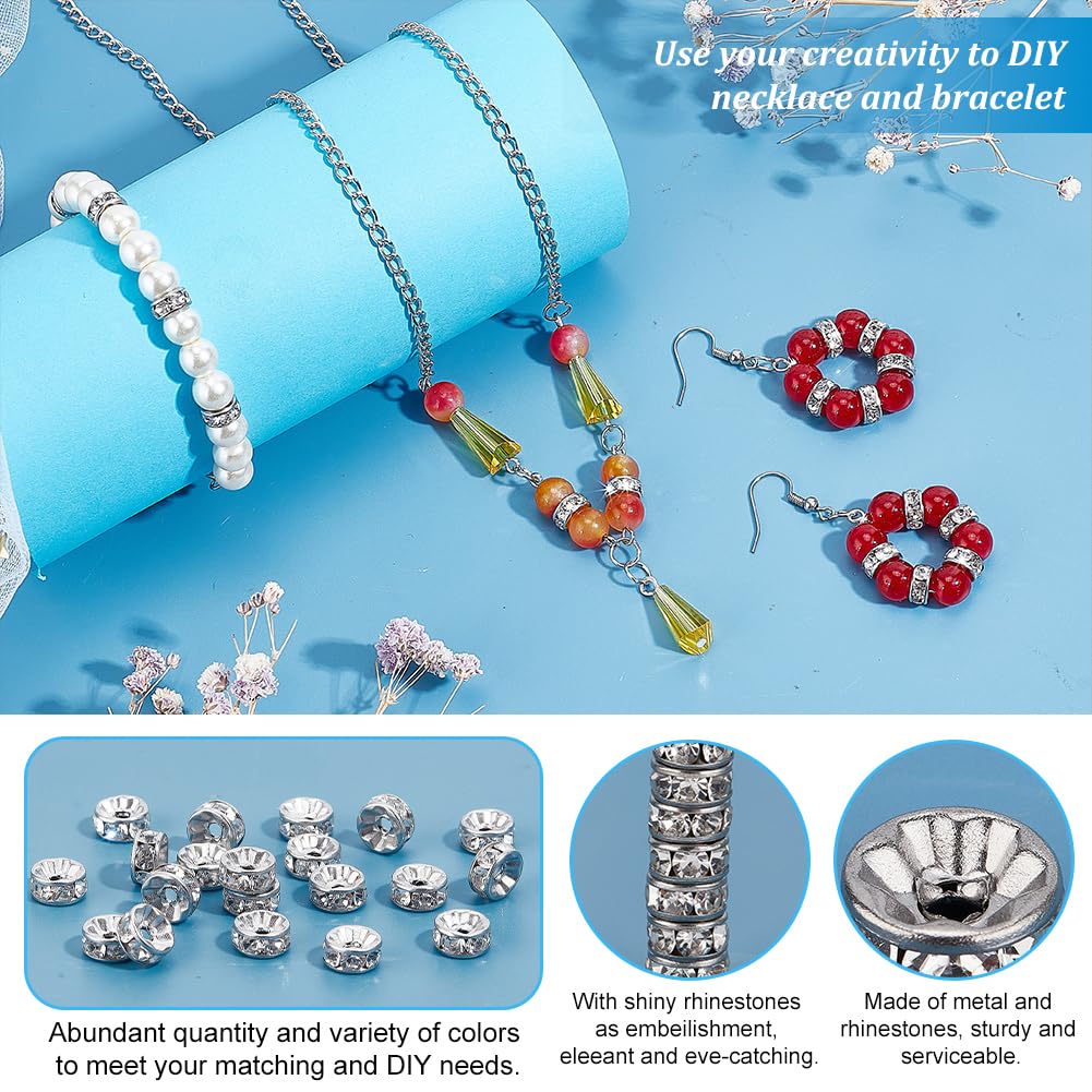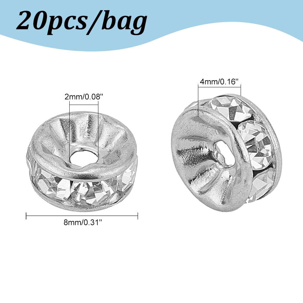 PandaHall Elite 約20個/セット 8x4mm 平型ロンデル 304 ステンレス クリスタル ラインストーン メタルビーズ ジュエリー DIY用 手芸用品 クラフト用品 アクセサリーパーツ ハンドメイド ブレスレット パーツ