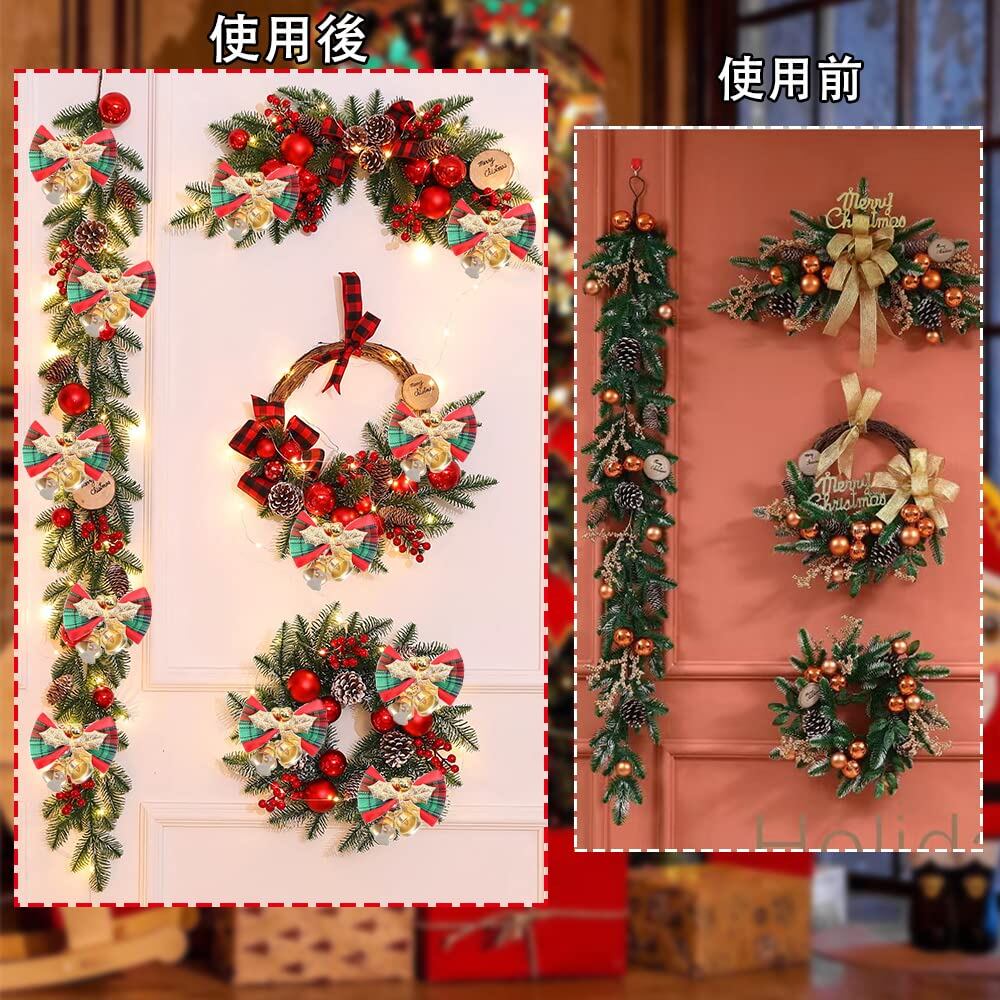 【様々の場所で活躍】これらのクリスマスリボンはクリスマスパーティー、結婚式、誕生日パーティー、家庭、オフィスなどに使用でき、クリスマスリース、階段の手すり、クリスマスツリー、プレゼント、ドア、壁、椅子、テーブル、カーテン、柵、柱、籐などを飾るのに最適です。また、追加のロープを使用してどこにでも繋ぐことができ、ペットの首まで繋ぐことができます。