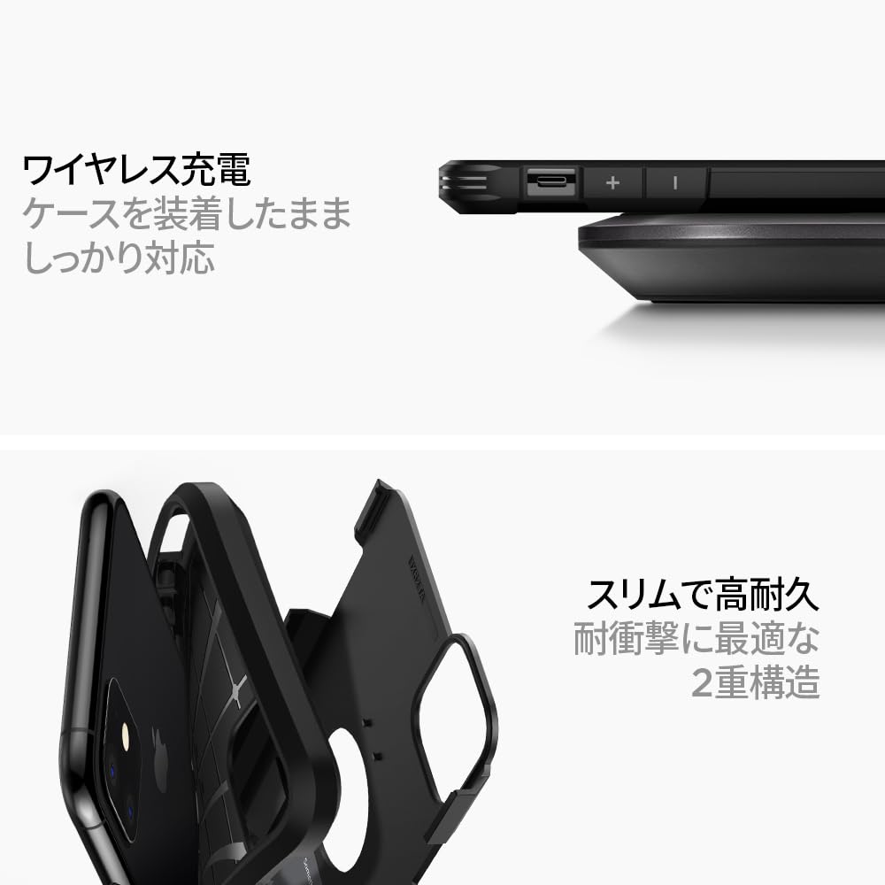 【Spigen】 iPhone11ケース 耐衝撃 米軍MIL規格取得 スタンド機能 カメラ保護 傷防止 衝撃 吸収 Qi充電 ワイヤレス充電 タフ・アーマー 076CS27190 (ブラック)