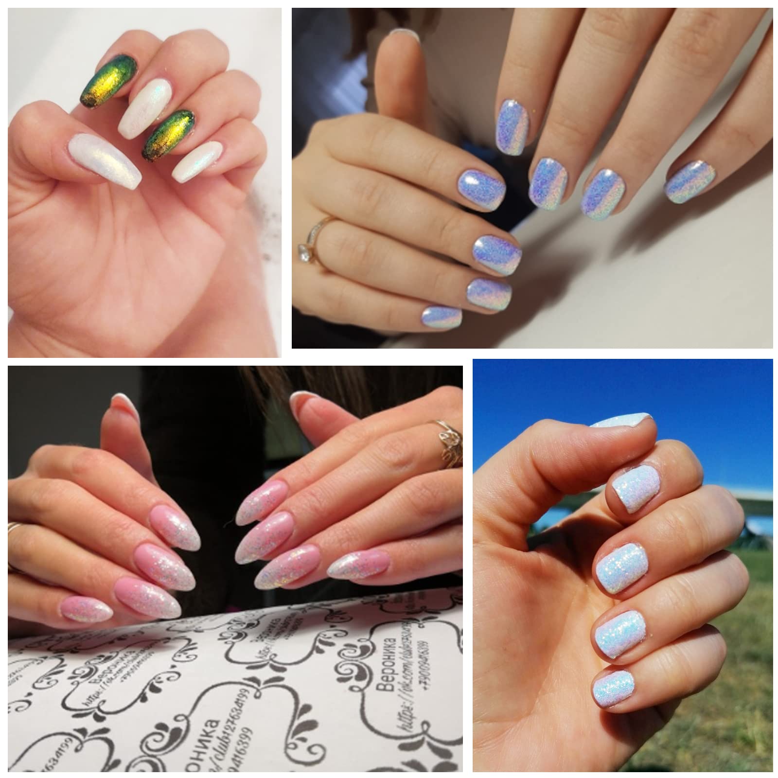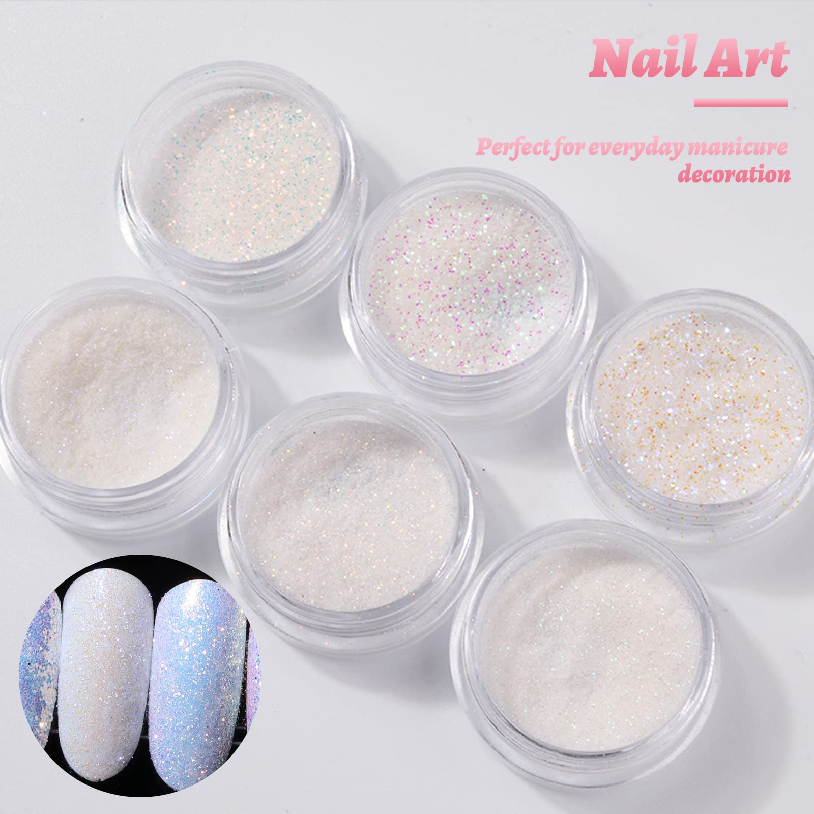 ネイルパーツ グリッター ラメパウダー オーロラ ホワイト ラメ ネイル シュガーパウダー ネイルアート ジェルネイル レジン デコパーツ 6個セット グリッターラメ ネイル