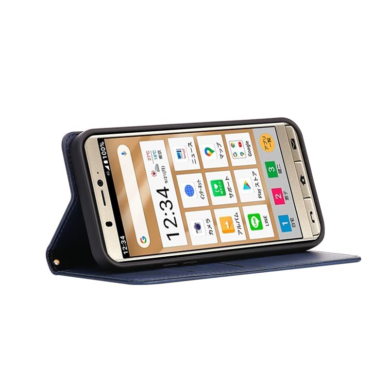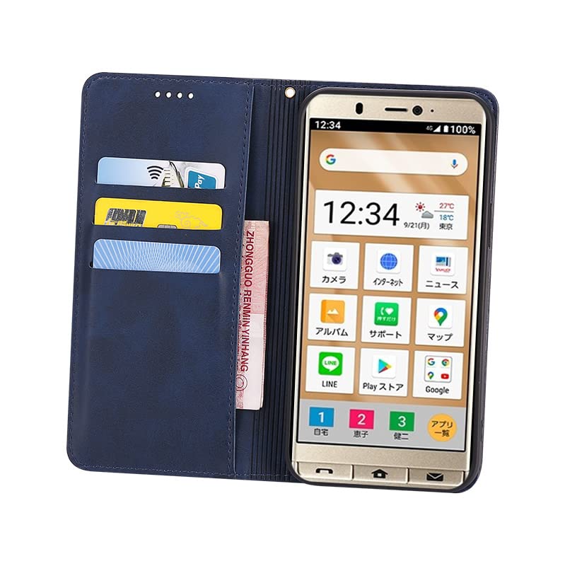 シンプルスマホ5 ケース 手帳型 SoftBank A001SH / Simple Sumaho5 ケース 手帳型 カバー PUレザー カード収納 財布型 耐衝撃 ケース マグネット スタンド機能付き 5色 (シンプルスマホ5 / SoftBank A001SH / Simple Sumaho5 ケース 手帳型) (深い青)