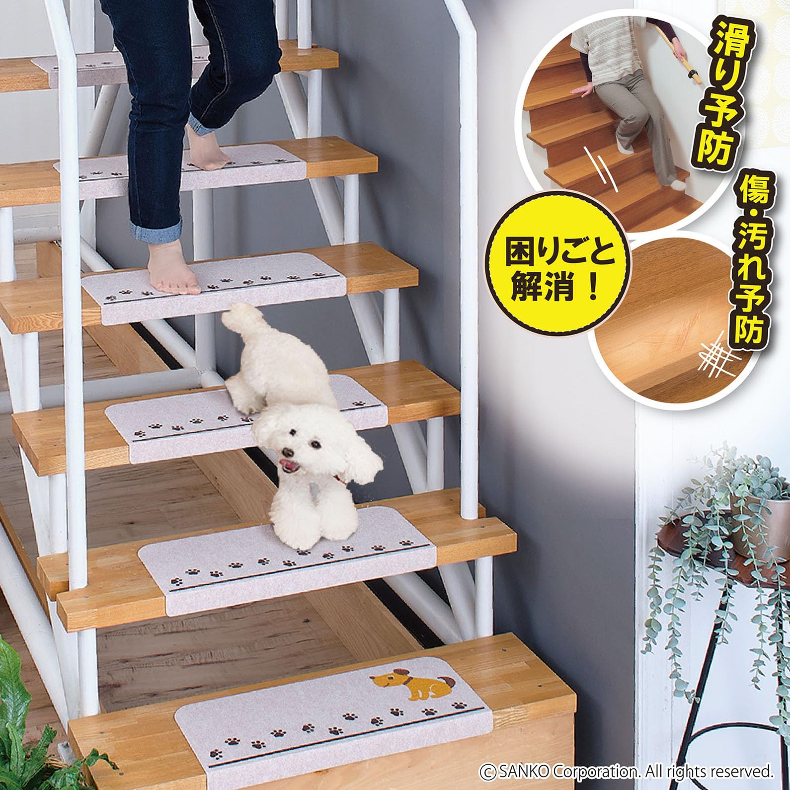 サンコー 階段マット ずれない 洗える 日本製 折り曲げ付 イヌ 犬 おくだけ吸着 55×21cm(折り曲げ55×4cm)15枚入 KD-56