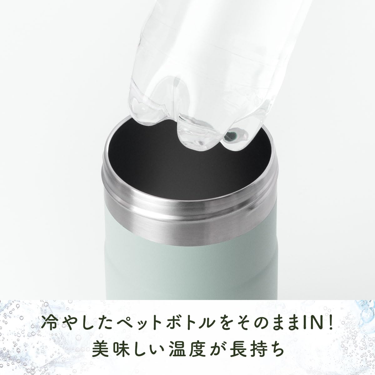 冷たいペットボトルをそのまま入れるだけで、冷たさを長時間キープできます