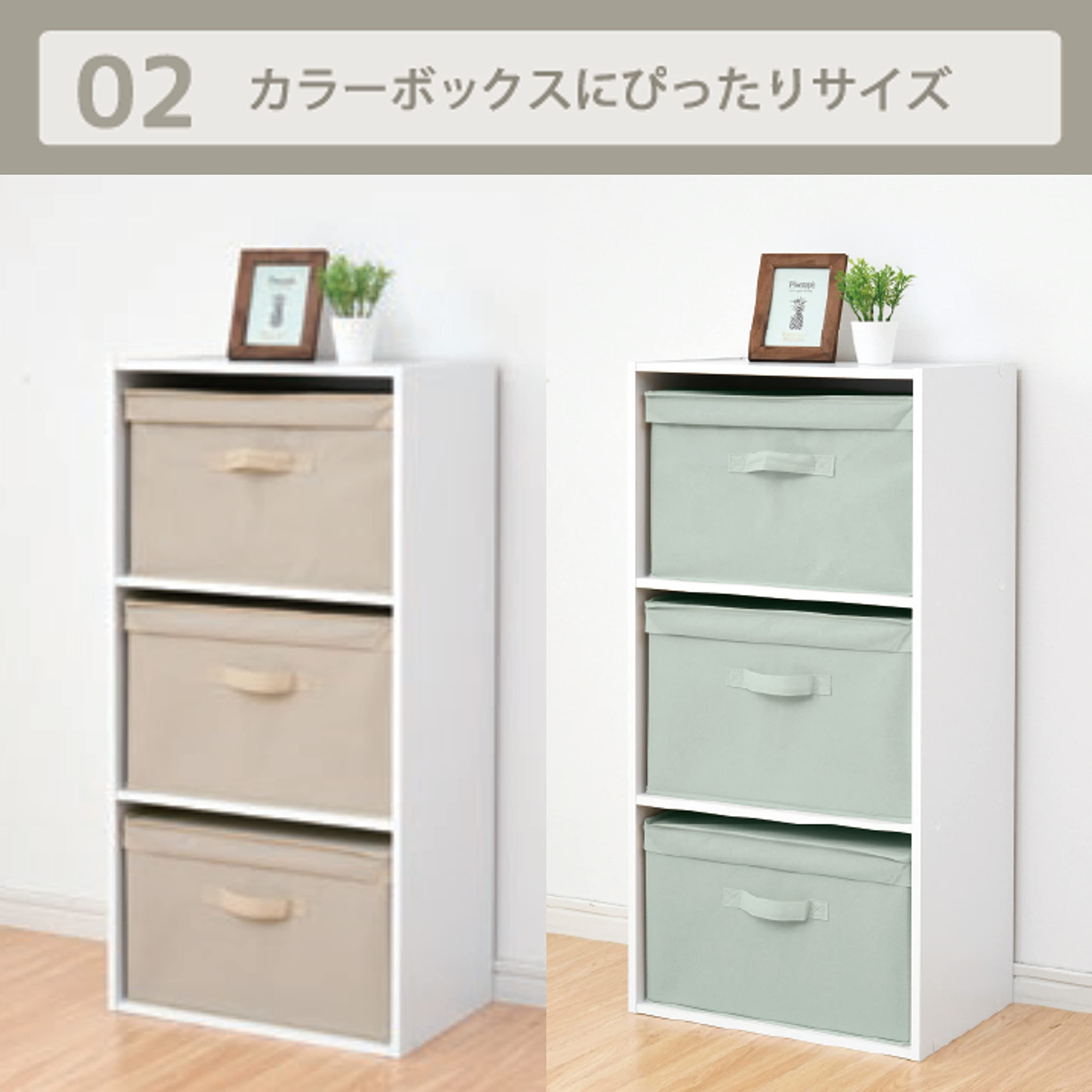 【カラーボックス対応】カラーボックスに対応しているサイズ感。3個セットなので、3段のカラーボックスを引出し収納として使うことができます