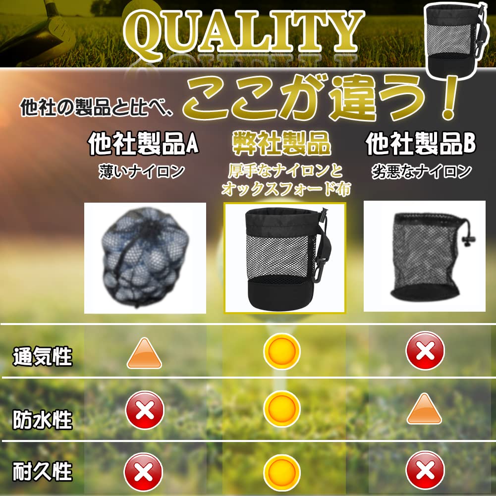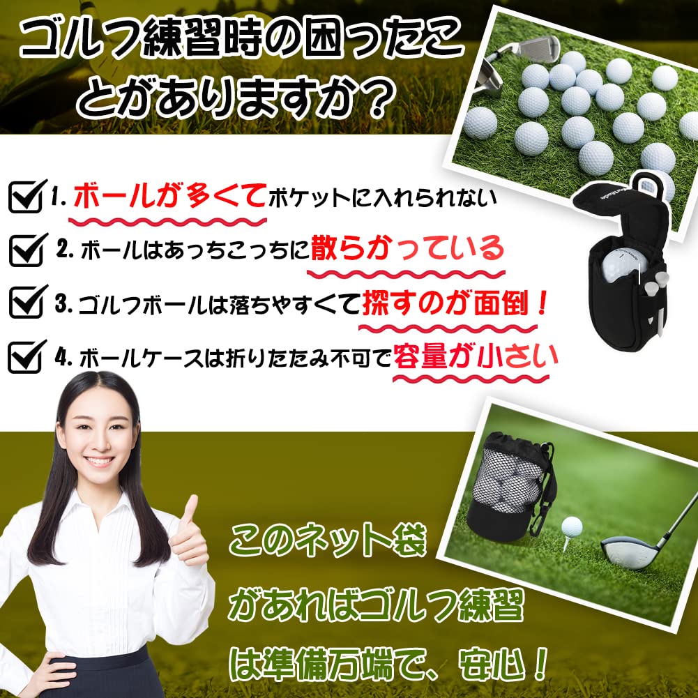 【ゴルファーには欠かせないゴルフボールケース】メッシュの袋の設計のゴルフネットは、いつでもどこでも使用可能です。 部屋でのゴルフボールの保管や、ゴルフ場でボール収納に最適です。
