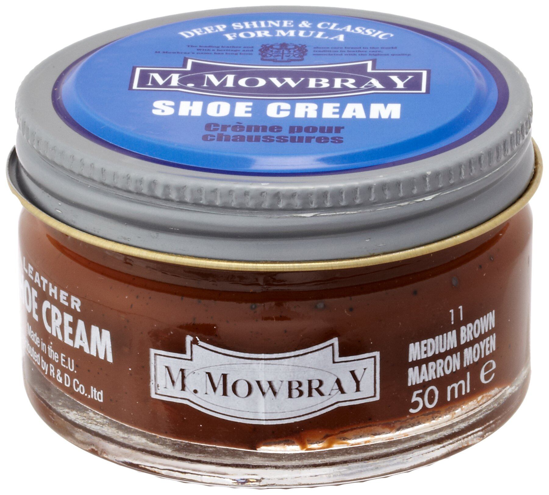 M.モゥブレィシュークリームは靴の歴史が長く、文化として根付いている欧州の伝統的製法とノウハウを今に伝える本格的靴クリームです。このシュークリームの特長は優れた浸透性により、潤いと栄養を与え、靴を長持ちさせる高い品質にあります。そして、同時に重厚感のある光沢、シルキータッチななめらかさと伸び、しっかりとした補色力といった使用感のよさとフィニッシュ(仕上り)が、プロや愛好家に支持され人気を博している理由です。製造は熟練の職人によって調合がなされ、さらにビンへの充てんも1つ1つ彼らの厳しい目でチェックをしながら丁寧に行われています。キャップを空けた時、クリームそれぞれの表情が違う、手づくりのぬくもりと感覚がM.モゥブレィシュークリームの最大の特長です。しかしハンドメイド的な製法であるがために、M.モゥブレィのシュークリームは大量生産ができません。近年では大型設備によって量産された、無機的で味気ない靴クリームが多い中、M.モゥブレィ・シュークリームは、昔ながらの伝統的製法を堅持し続けています。そして「クオリティ(品質)を常に向上したい」という伝統と向上心はブランドの誇りとこだわりです。純粋に「靴を大切にして欲しい」とう職人たちの気持ちが、このクリームに込められています。M.モゥブレィのシュークリームは品質・伝統・精神を現代に受け継いだエキスパートなシューケアブランドです。