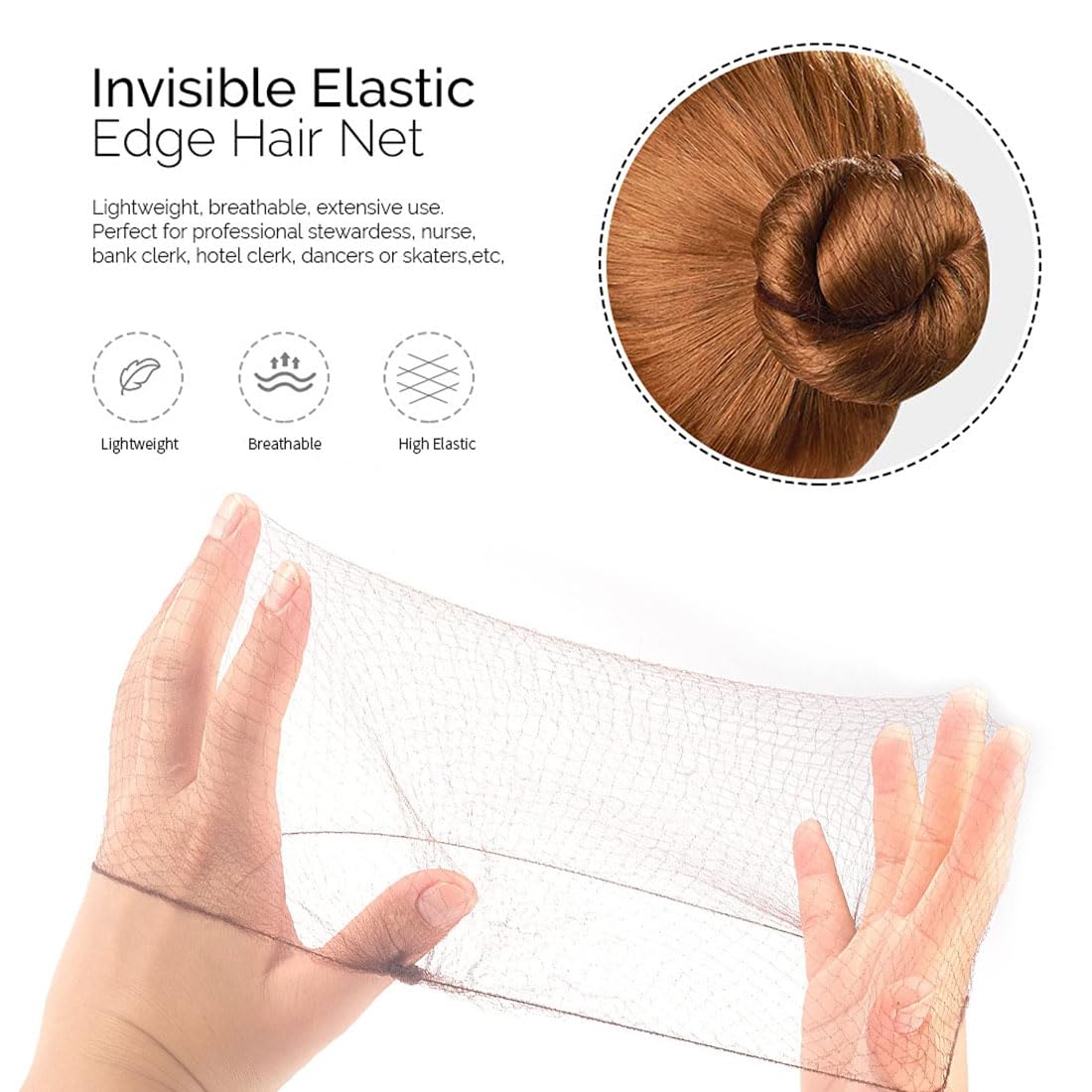 女性用お団子用ヘアネット20個、見えないヘアネット弾性エッジメッシュ(コーヒー)