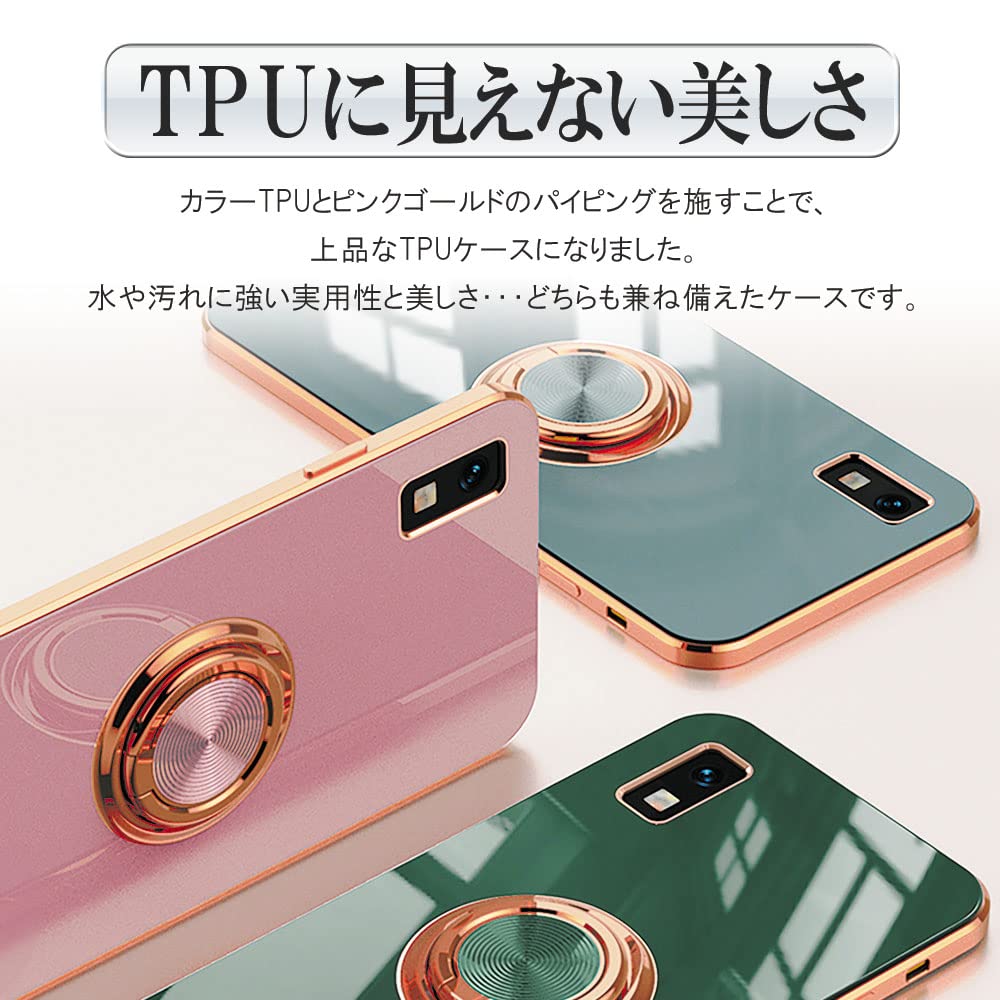 ピーシーエーテック リング付き ソフトケース TPU保護ケース スタンド機能付き 360回転カバー 耐衝撃 シリコン 超薄型 AQUOS wish2 SH-51C wish SHG06 用 ブラック x ゴールド