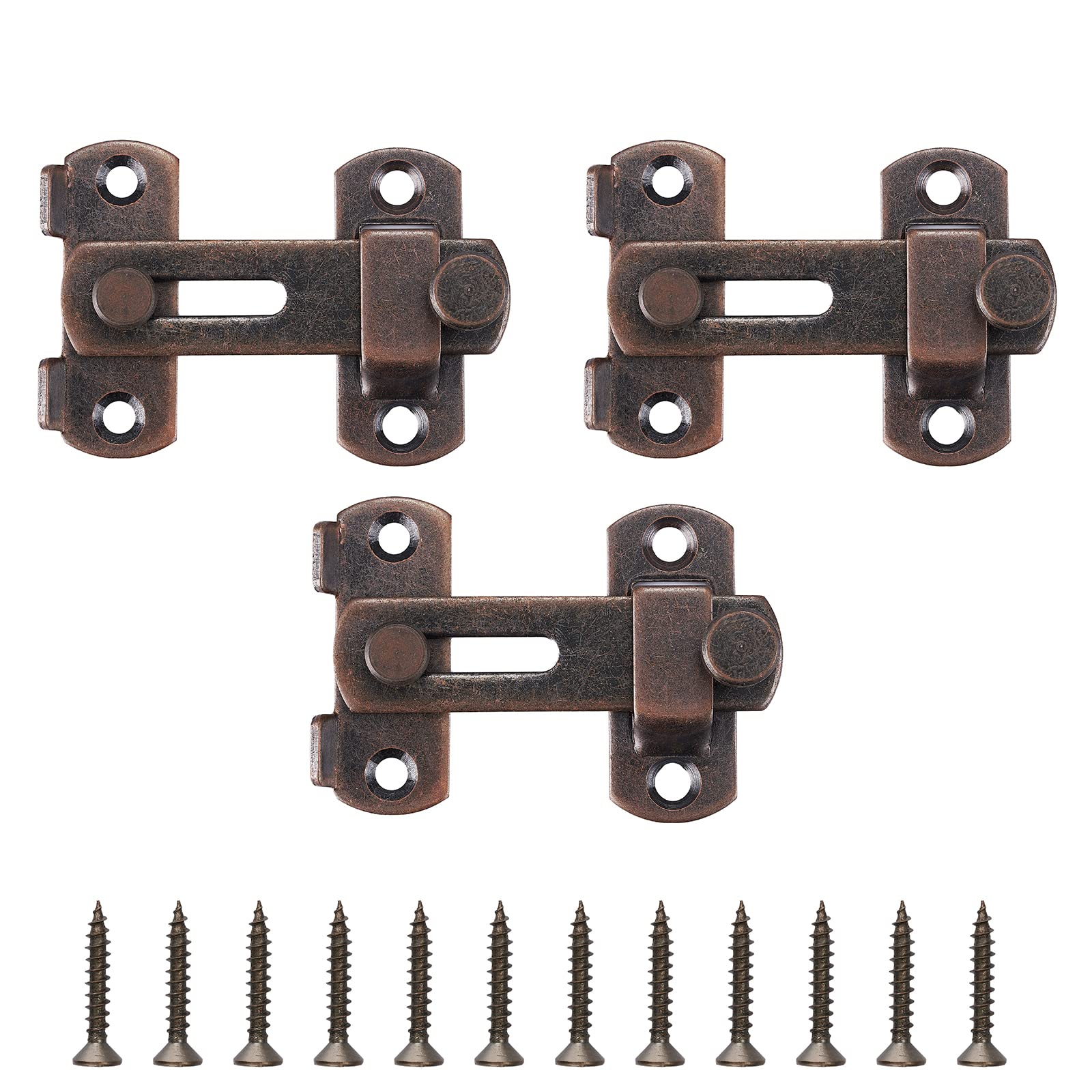 ドアロック 3個セット 銅色 レトロスタイル ステンレス製 180度留め金タイプ 引き出し 鍵 止め金具 とびらロック バーラッチ