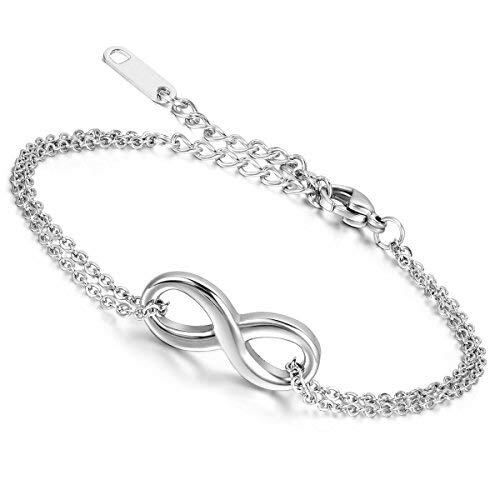 カップル ブレスレット お揃い ステンレス アンクレット: 無限大 8字 シルバー 愛の証 レディース バングル 手脚も適合 シンプル ジュエリー 可愛い クリスマス バレンタインデー-プレゼント 誕生日 記念日 2個セット (シルバー-small)