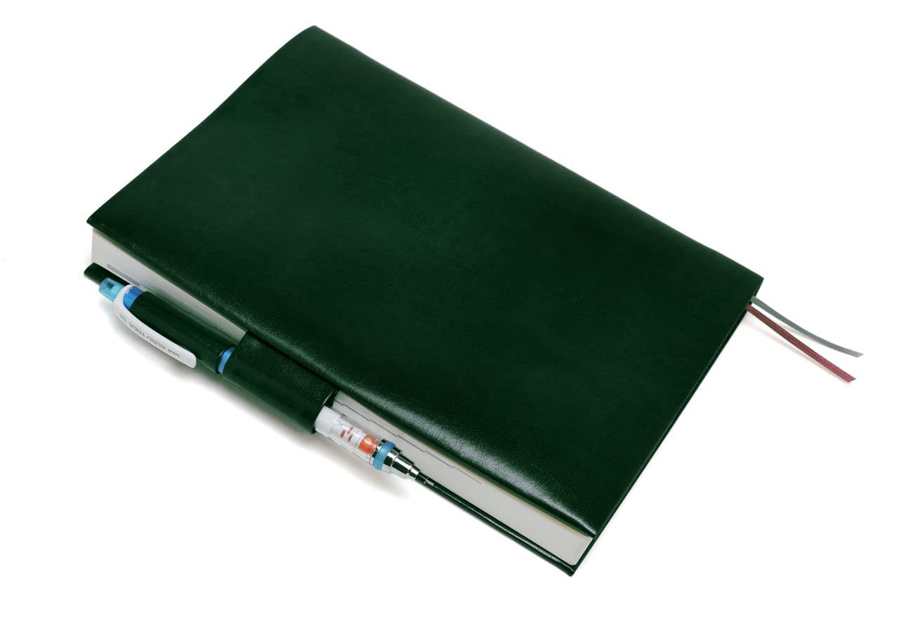 お手入れいらずのほぼ日手帳カズン対応 A5サイズ リサイクルレザー カバー(ペンホルダーとスピンしおりひも付き/クロムグリーン)