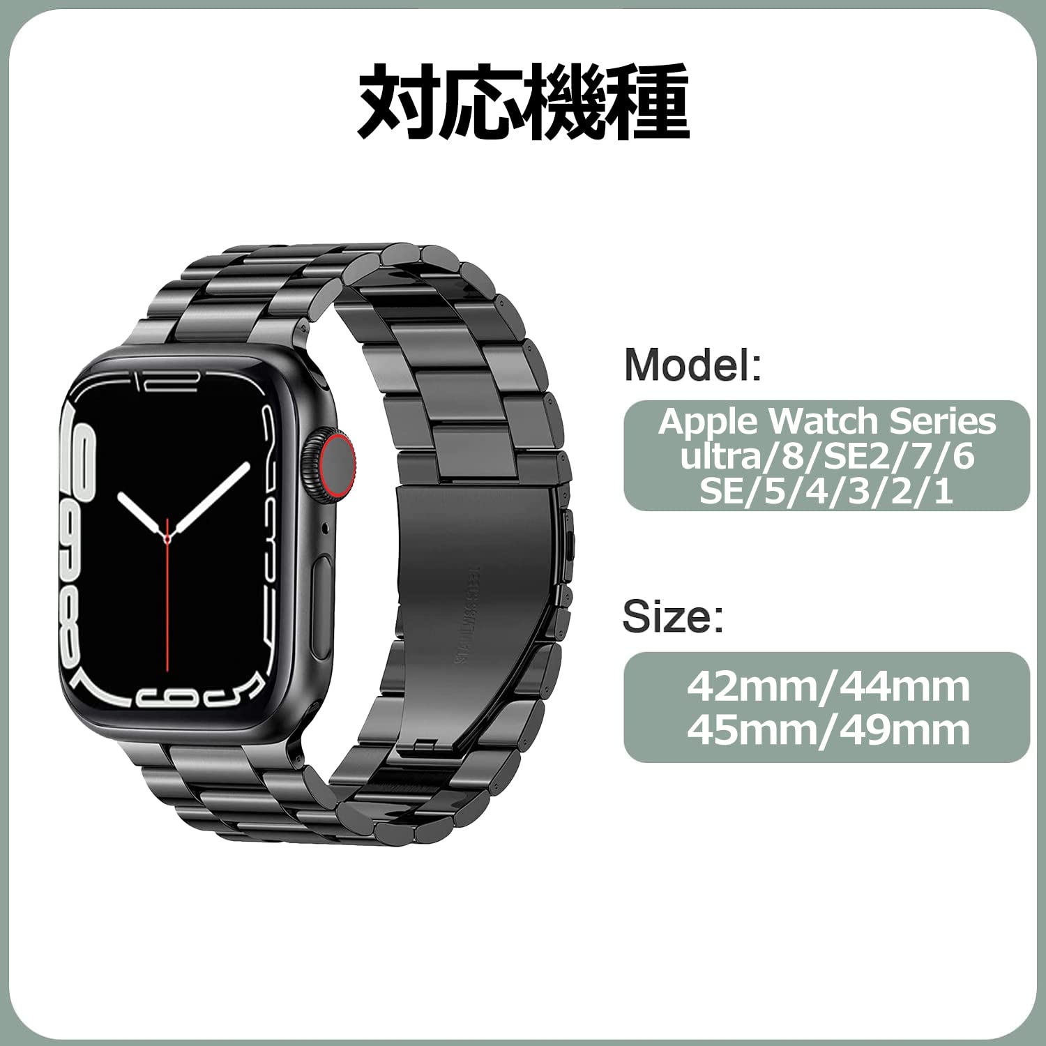 【高品質なステンレス素材】耐腐食性、耐摩耗性、耐酸性の高品質ステンレス素材を採用、耐久性に優れています。また、精密な研磨技術と使いやすくファッショナブルな設計となっており、高級感あふれるApple Watchベルトとなっています。