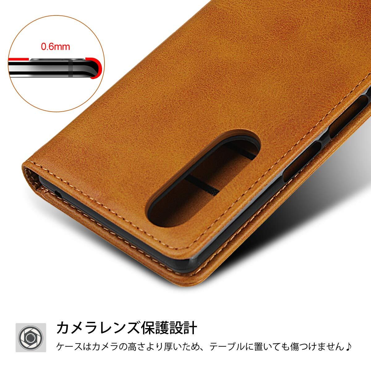 Xperia 5 ケース 手帳型 SOV41 au / SO-01M docomo/ SoftBank 対応 ケース ソニー SOV41 SO01M ケース カバー エクスペリア 5 エクスペリア5 Xperia5 手帳 適用 case 【iCovercase】 内蔵マグネット 携帯カバー カードポケット カード入れ スタンド機能 シンプル 落ち着いた色 スマホ 保護 携帯ケース レトロ ライトブラウン