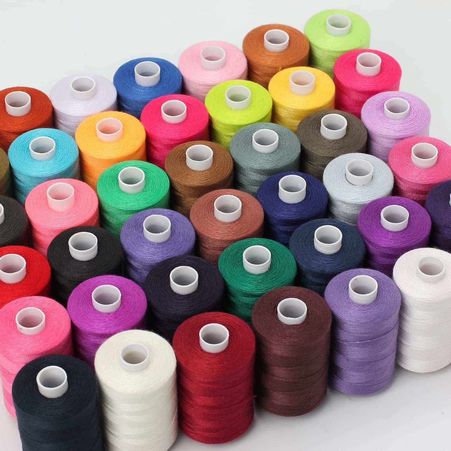 糸の太さ:60番。糸の長さ:1000ヤード(約914.4m)/巻,合計42巻-38404.8m。素材:ポリエステル。梱包サイズ:26.7X22.5X6.3cm