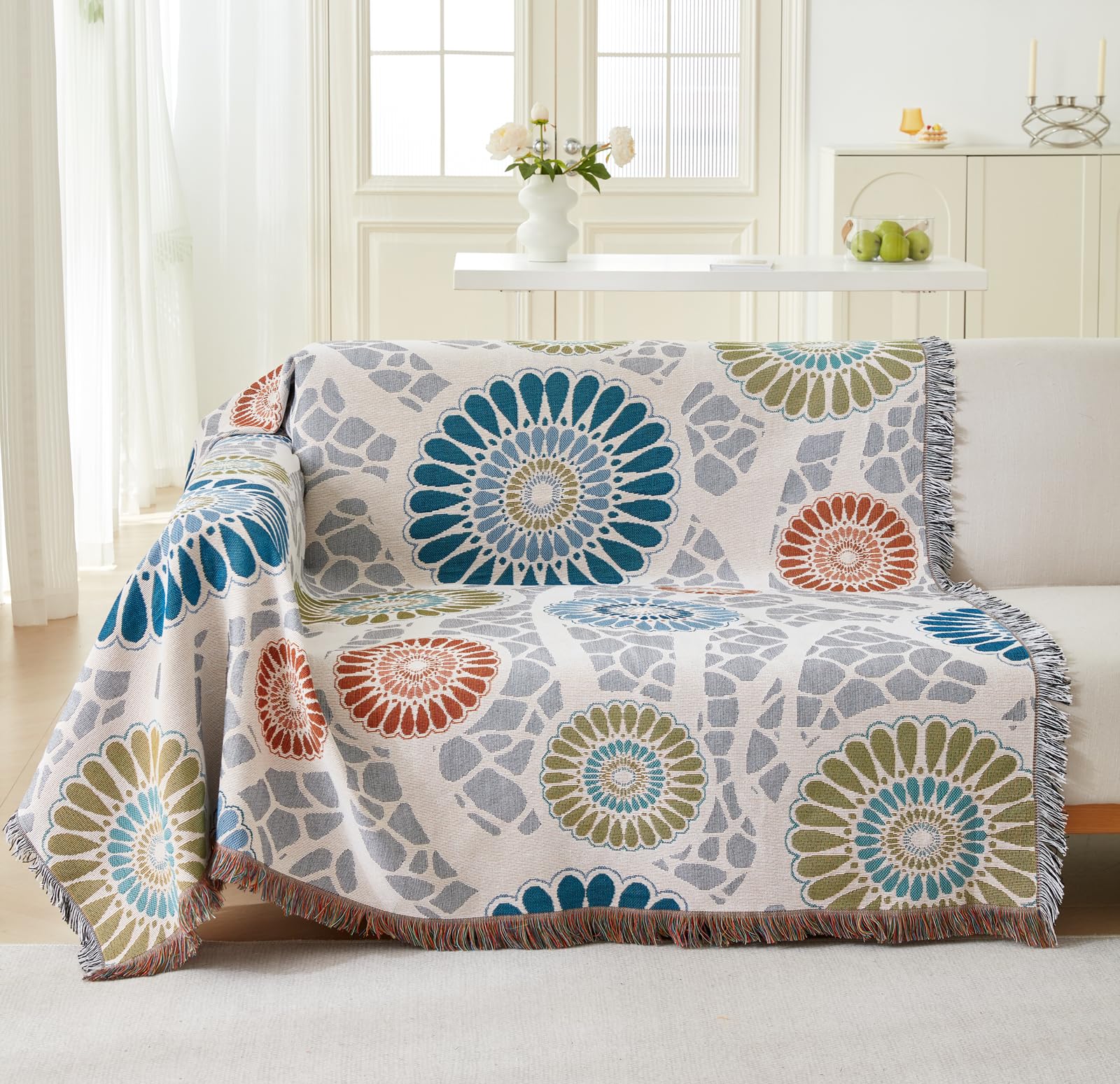 マルチカバー 北欧風 ソファカバー 長方形 ブランケットフリンジ付き 綿 1 2 3人掛け カウチ ベッドカバー カーペット テーブルクロス リバーシブル 汚れ防止 犬猫傷 防止 防塵 四季通用 大判 洗える