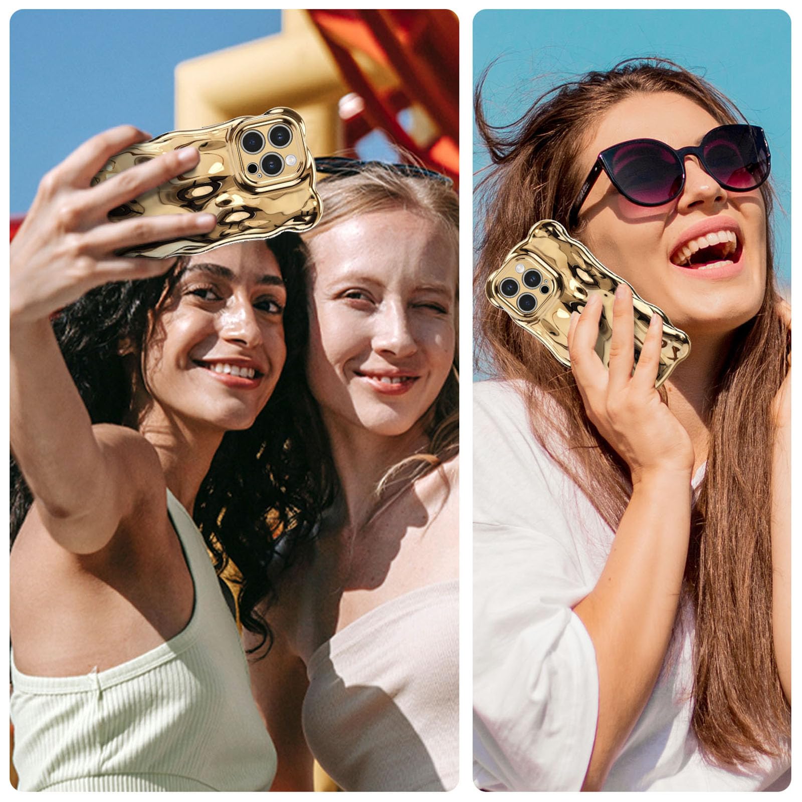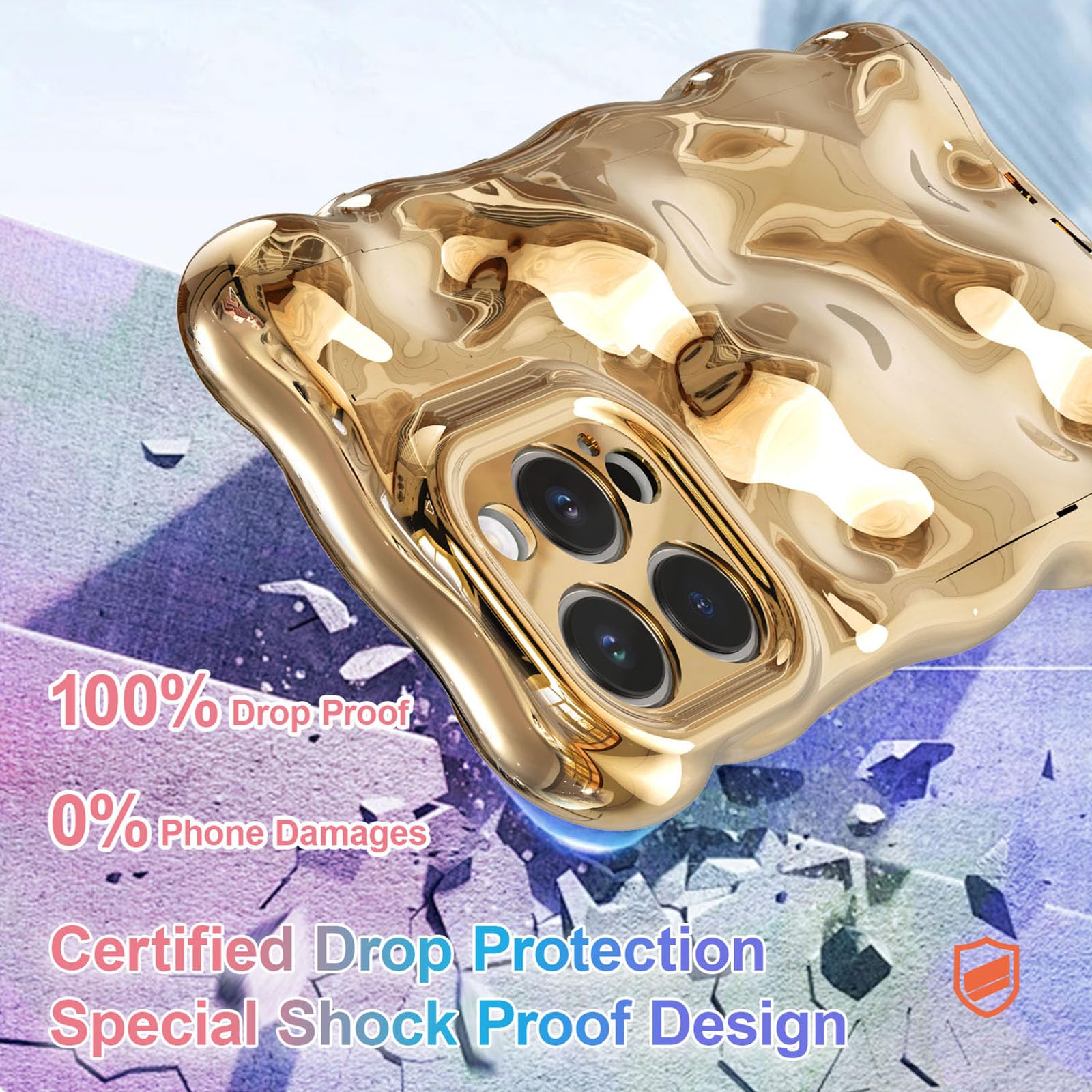 UEEBAI 対応 iPhone 15 Pro 用の ケース ウェーブデザイン スマホケース 可愛い 人気 おしゃれ ケース 薄型 軽量 グリッター 光沢カバー 耐衝撃 波型 バンパー スマホケース - ゴールド