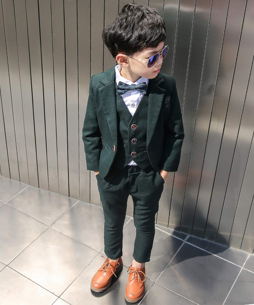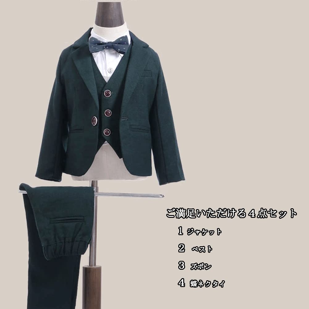 [RongFa] 男の子スーツ グリーン カジュアルスーツ 子どもスーツ 4点セット 入学式 卒業式 紳士服 発表会 演奏会 90 100 110 120 130 140cm